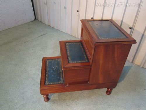 A superb set of Early Victorian Library steps or 3 step commode on turned legs
