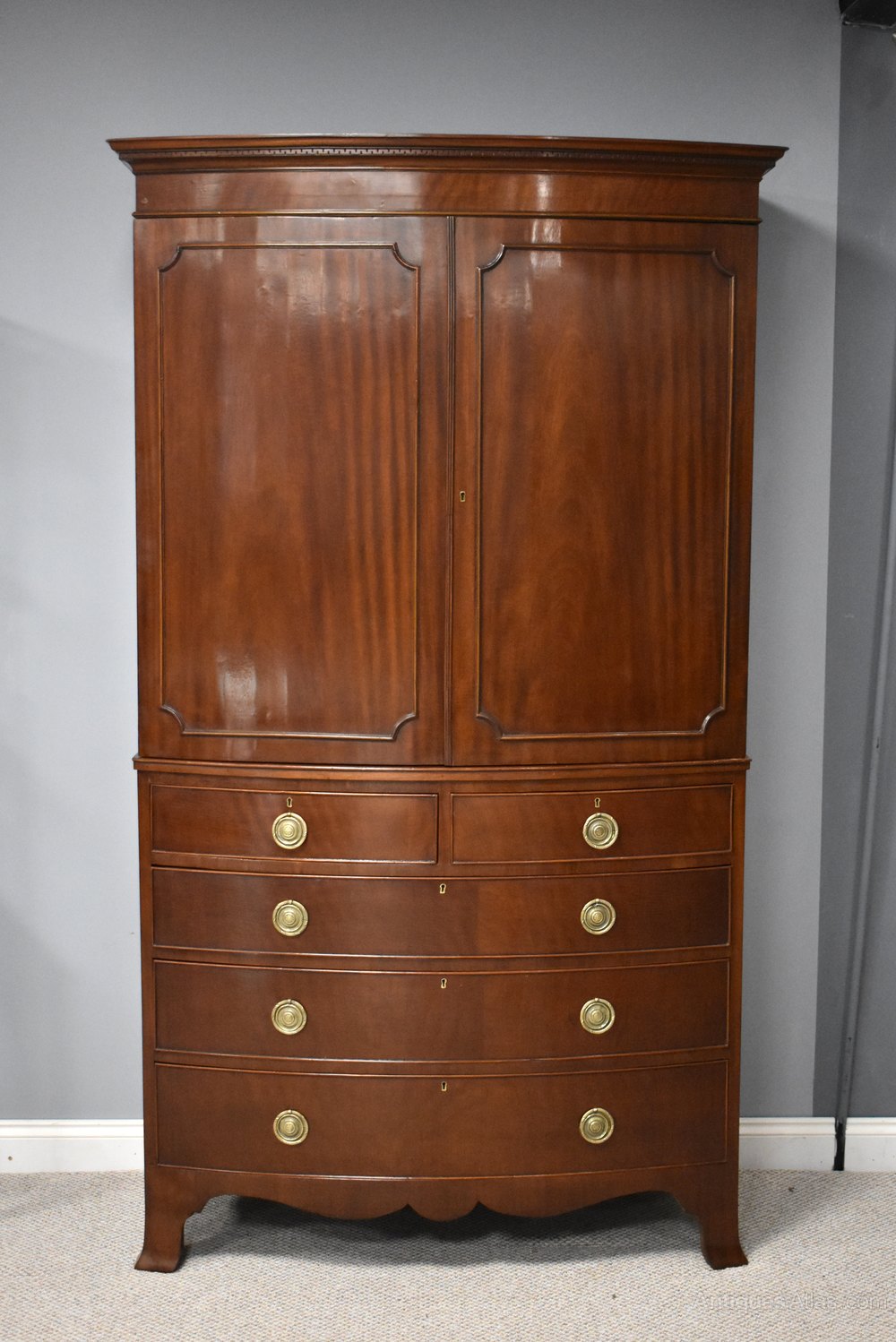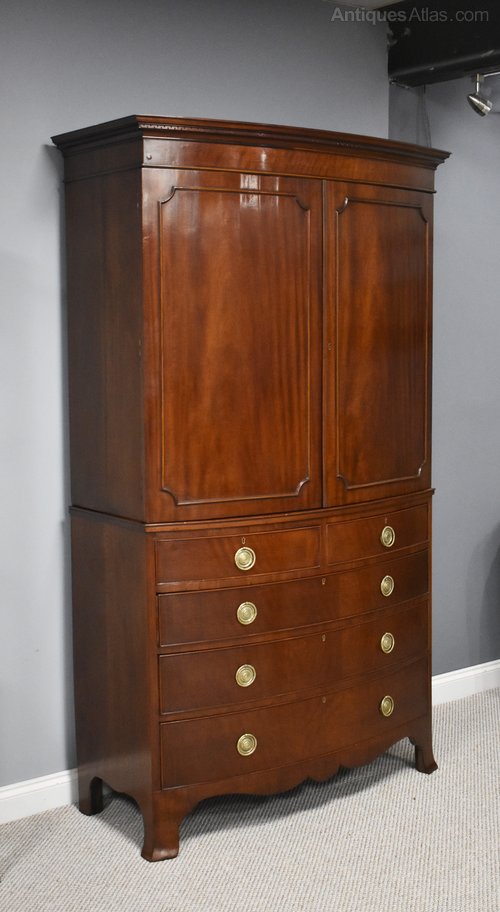 Edwardian Bow Front Mahogany Linen Press