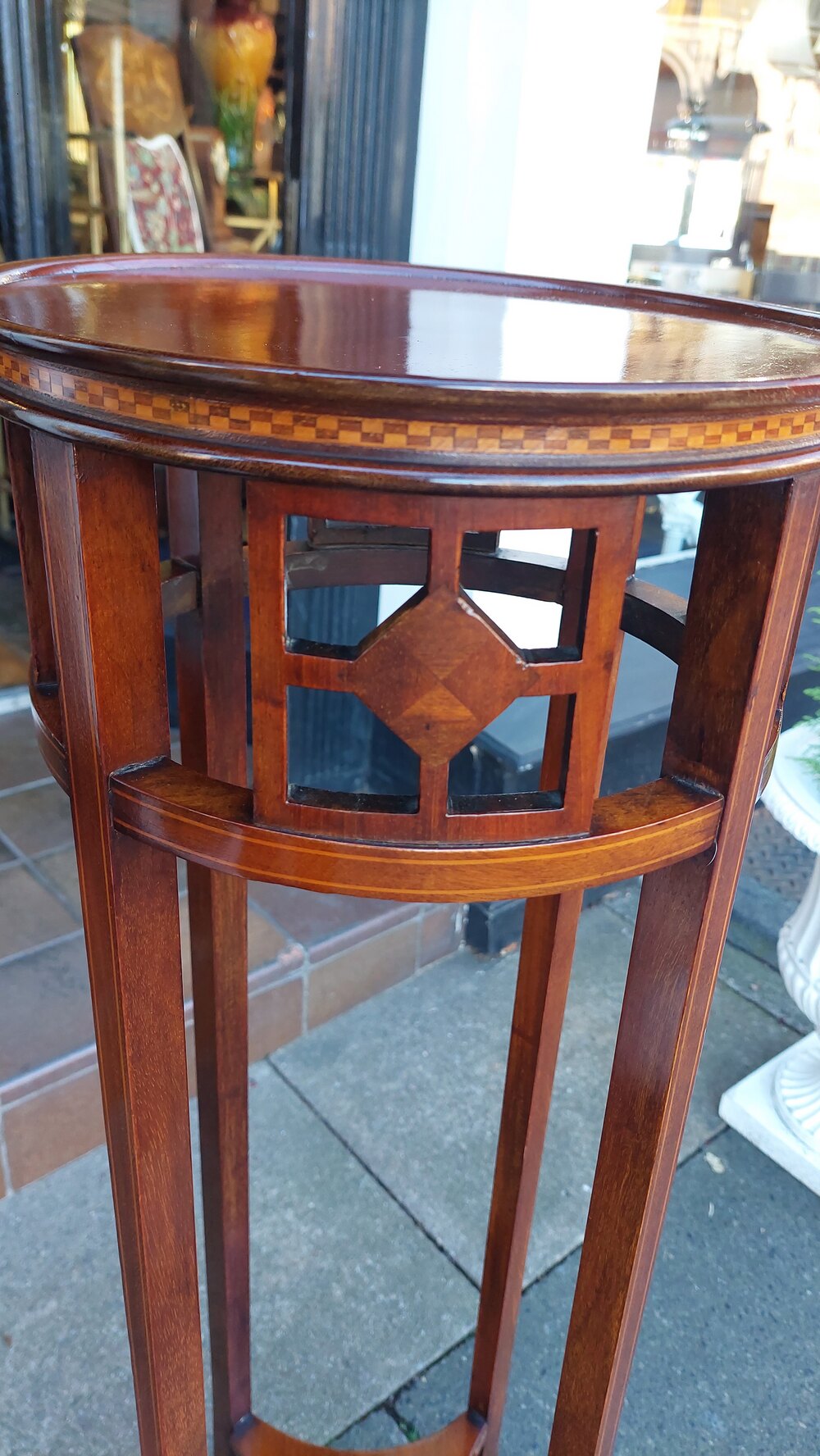 Edwardian Boxwood Strung Mahogany Jardinière Stand
