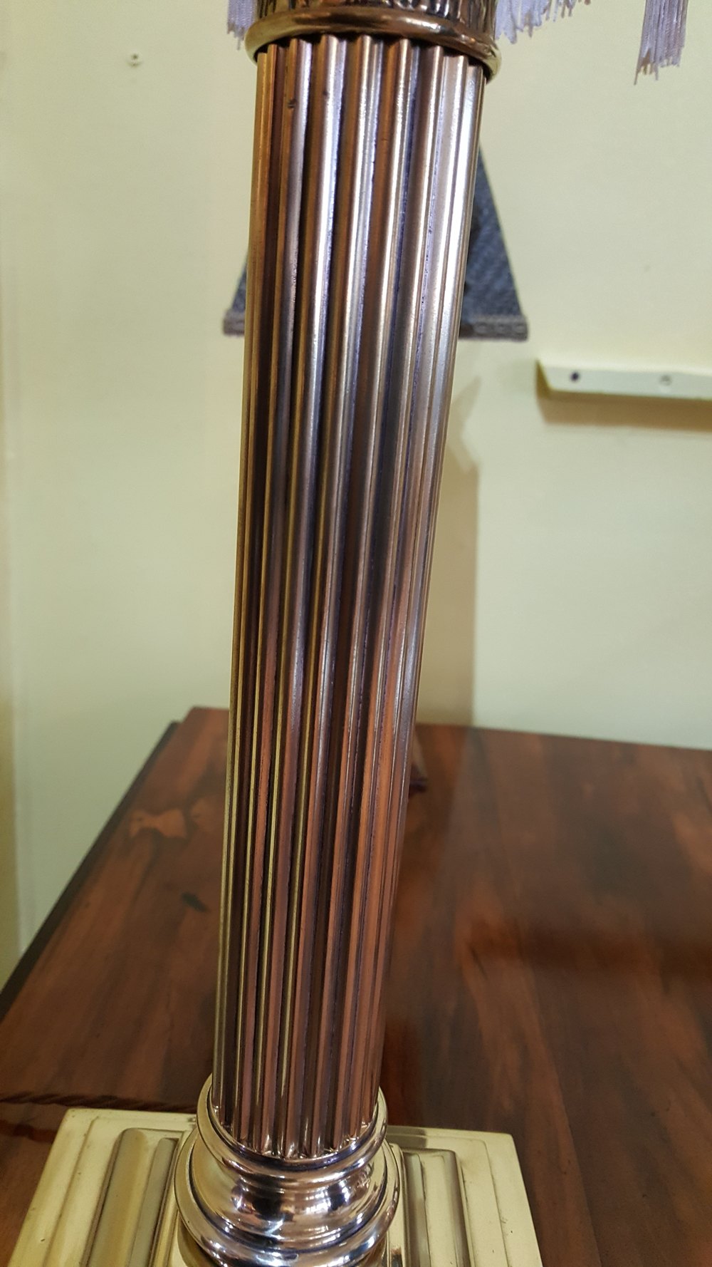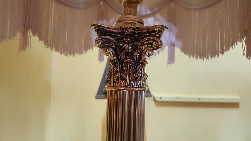 Edwardian Brass Table Lamp in the form of a Corinthian Column on a Platform Base