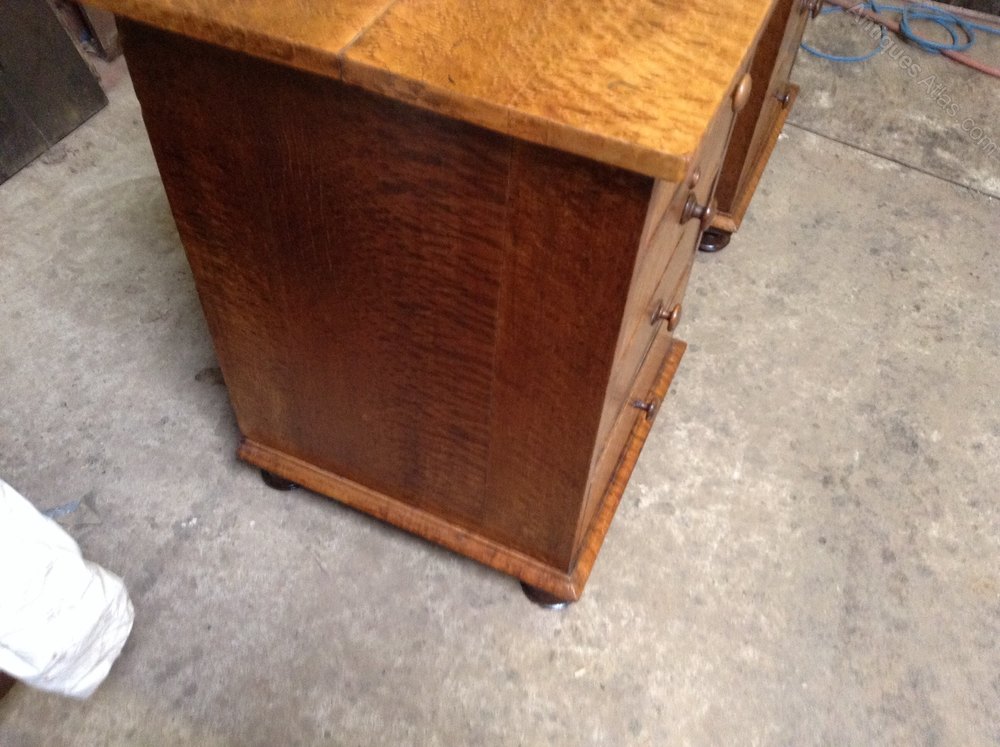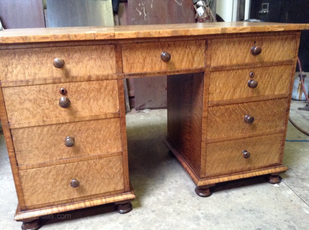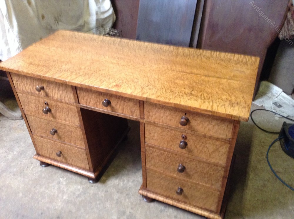 Edwardian Burr Maple Kneehole Writing Desk