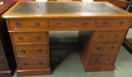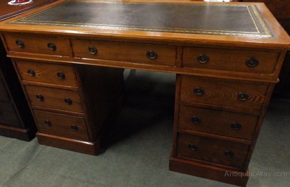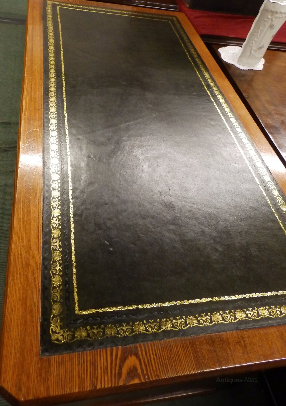 no-55-1901 Edwardian oak pedestal desk with new leather insert in very good condition