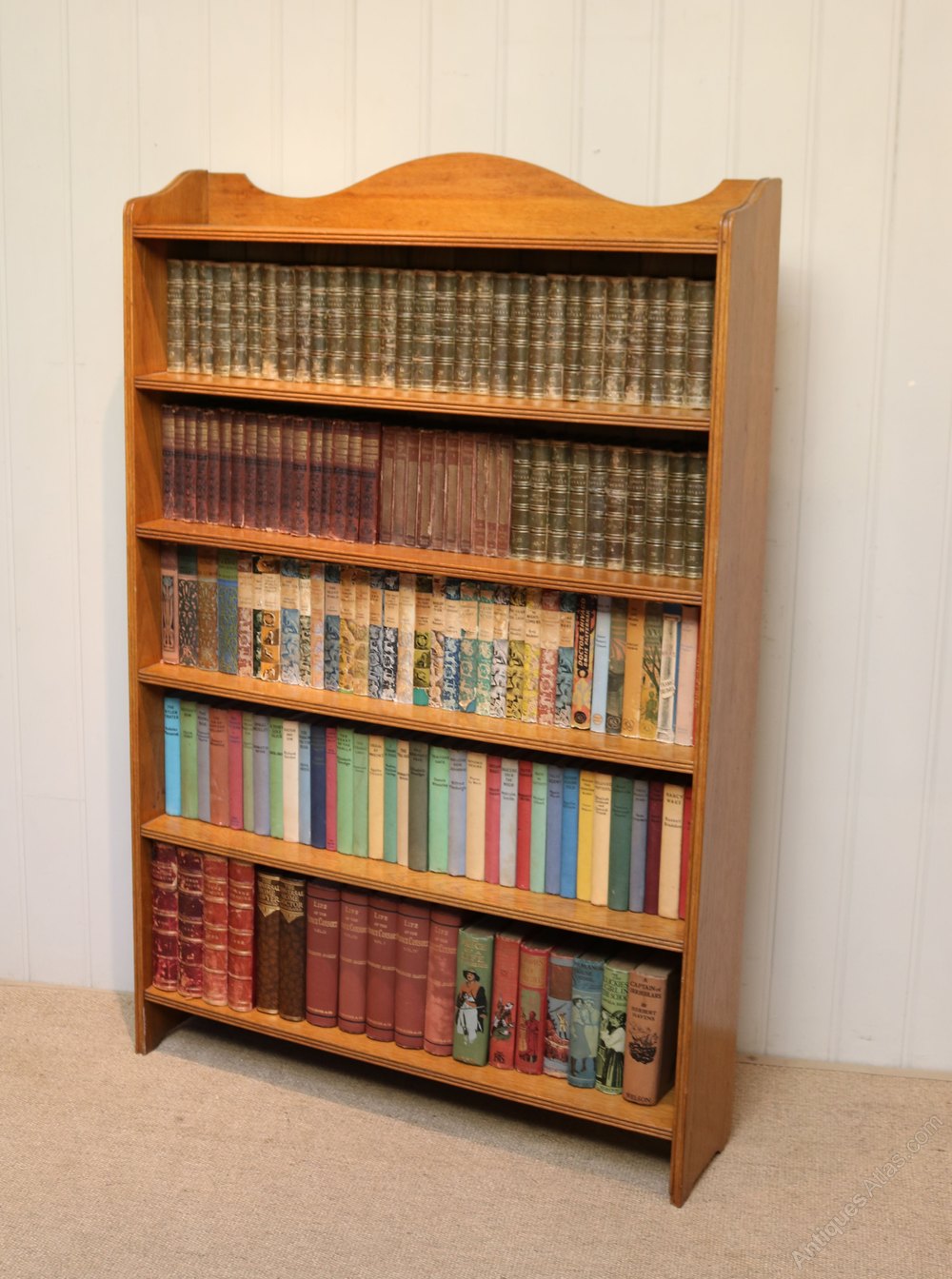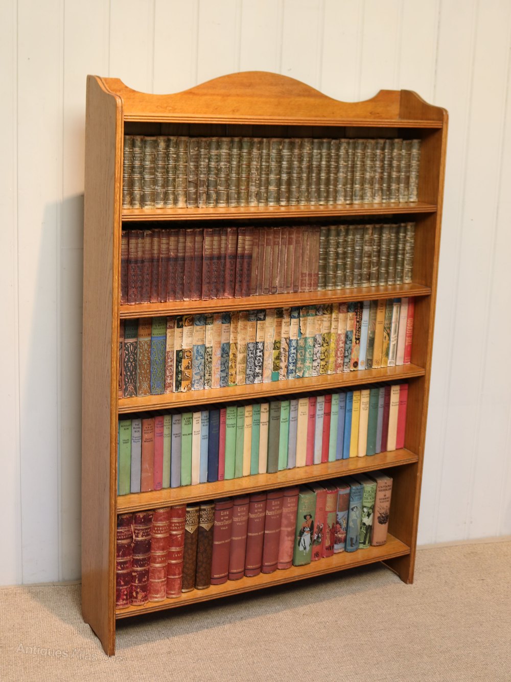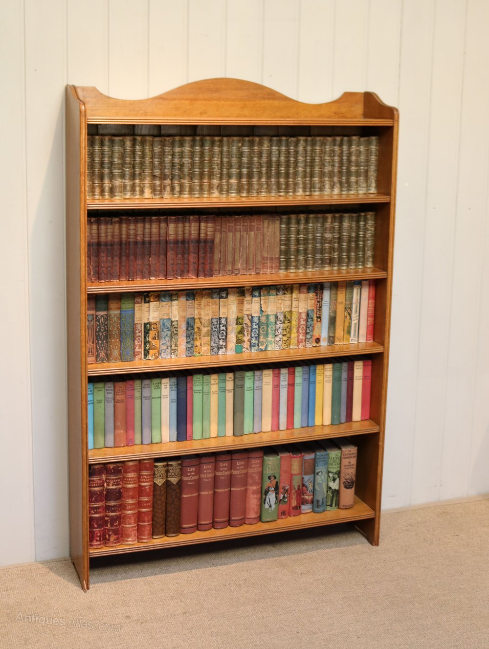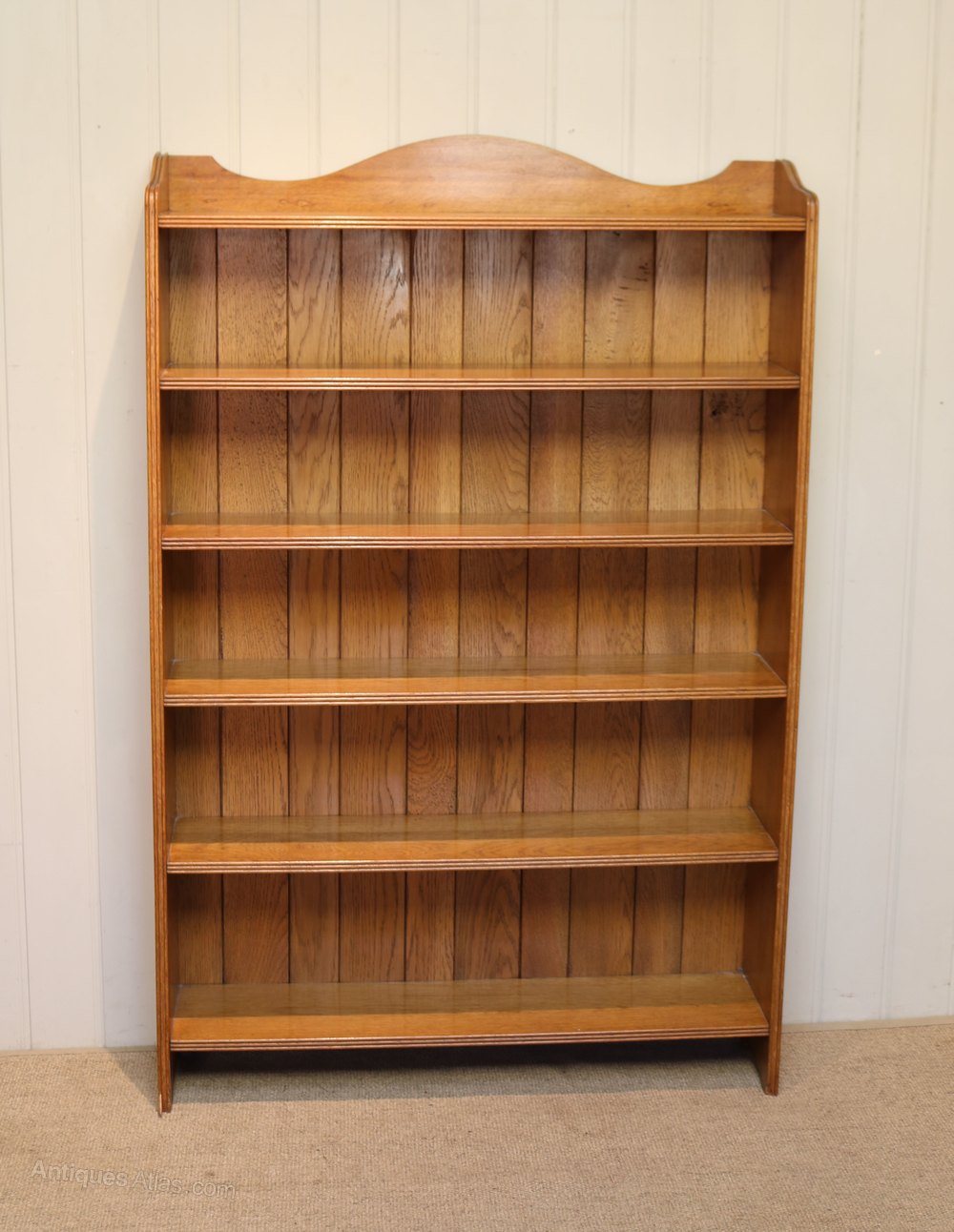 Edwardian light oak open bookcase having a panelled back and six fixed shelves all having reeded edges.The shelves measure 87.5 cm wide ,8.5 cm deep and the height from top to bottom is 20cm,20cm,20.5cm,22.5cm,and 25.5 cm