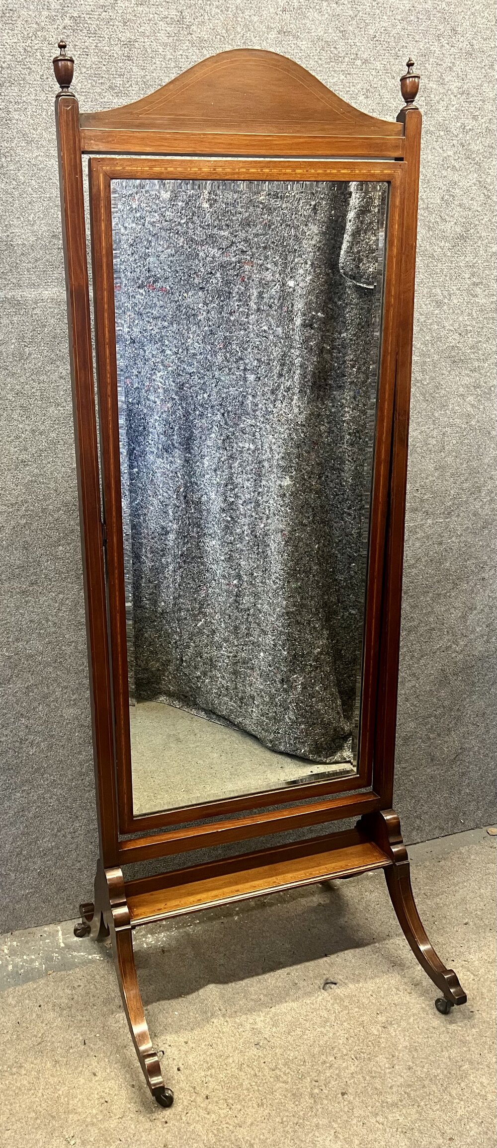 Edwardian Mahogany & Inlaid Cheval Mirror