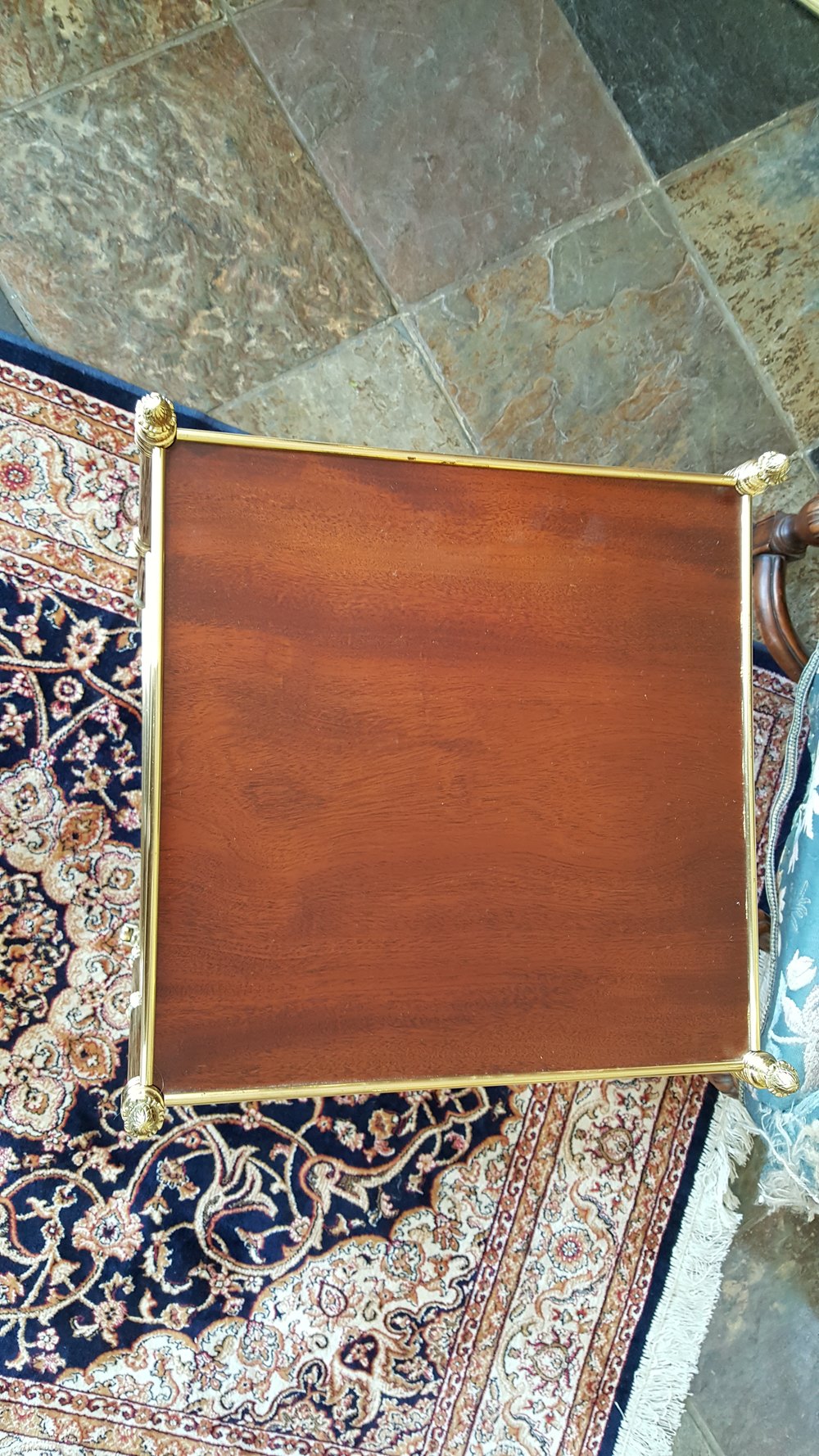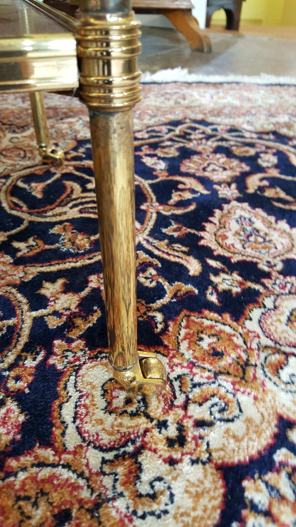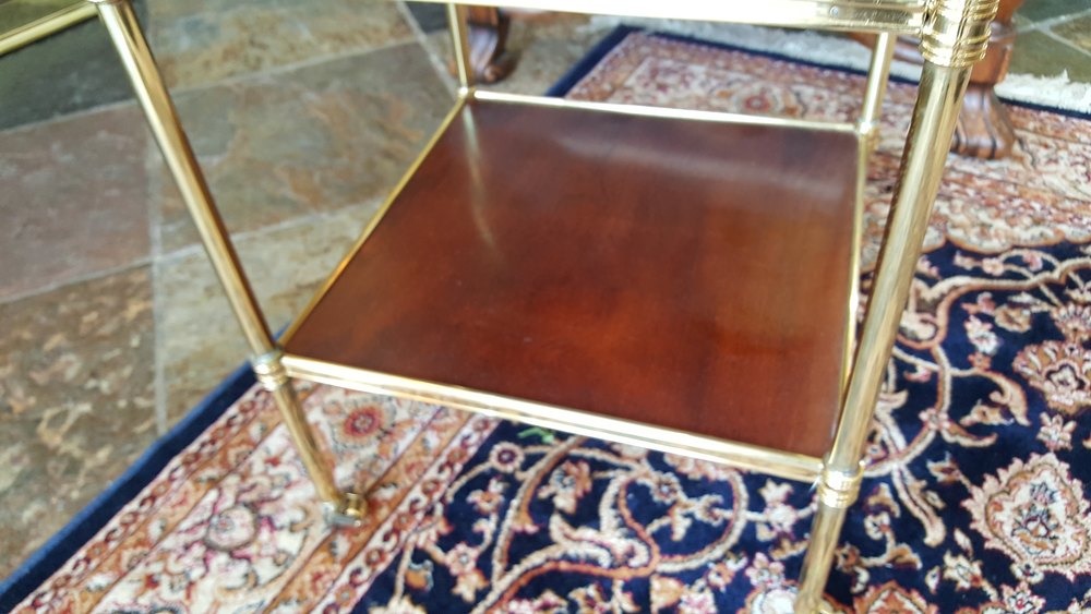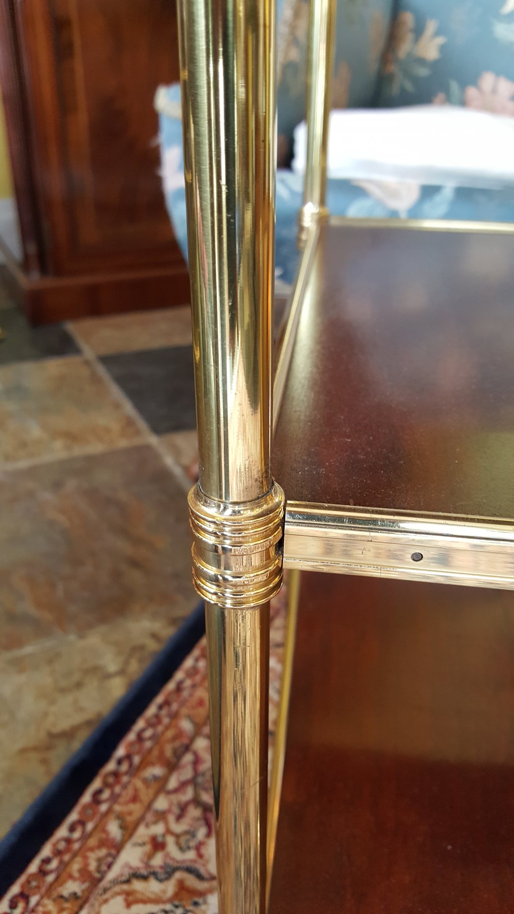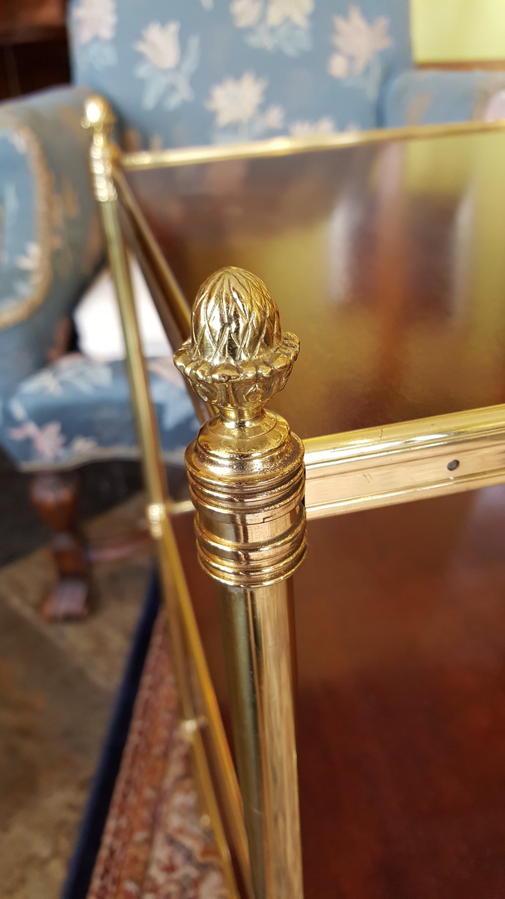 Edwardian Mahogany and Brass Bound Etargere Table Stand with Brass Uprights with Acorn Tops and Brass Castors