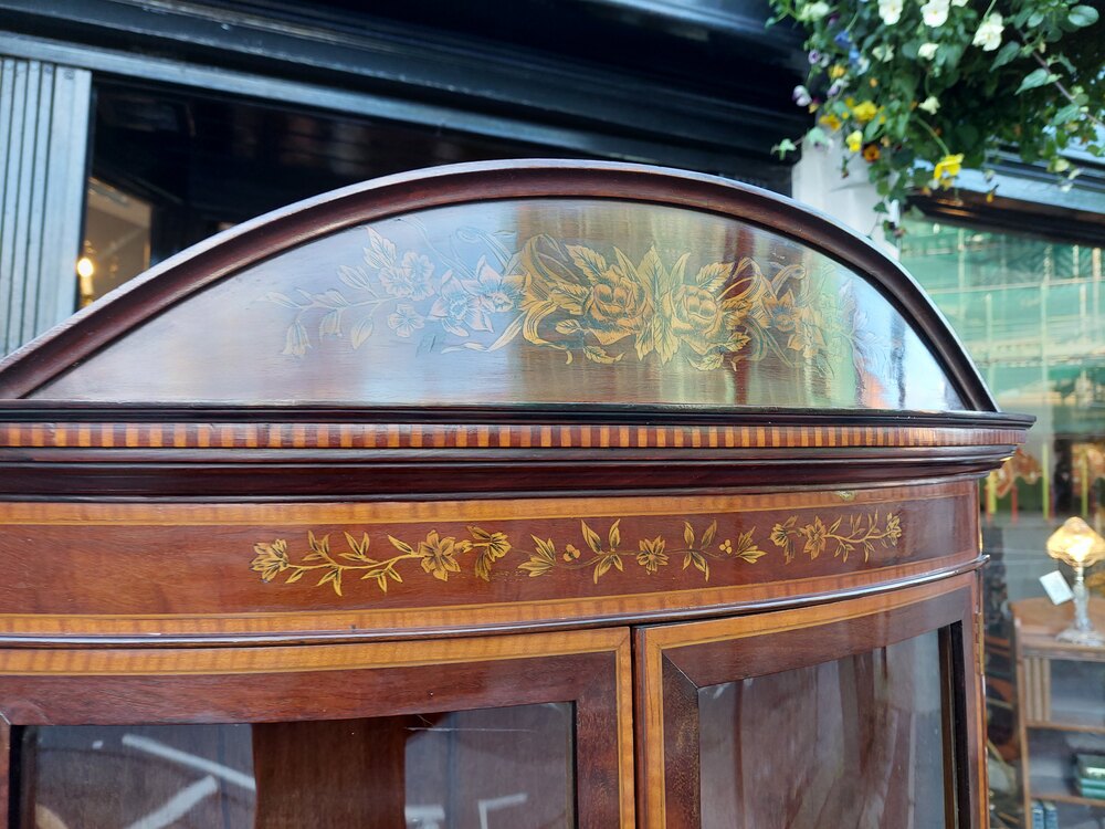 Antique Burr Walnut Inlaid Display Cabinet