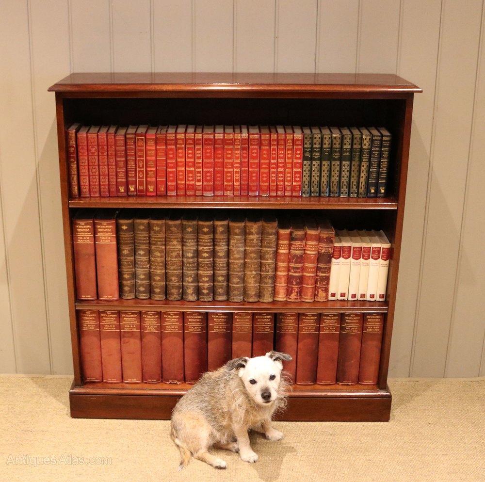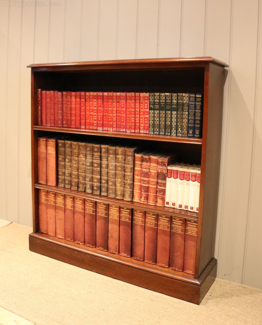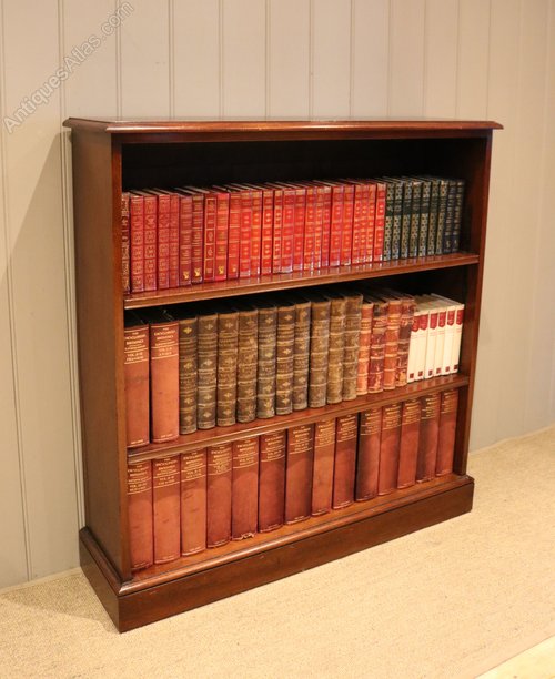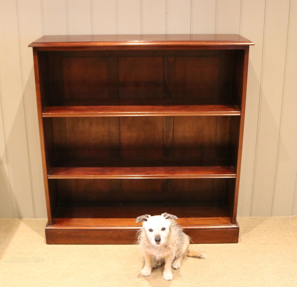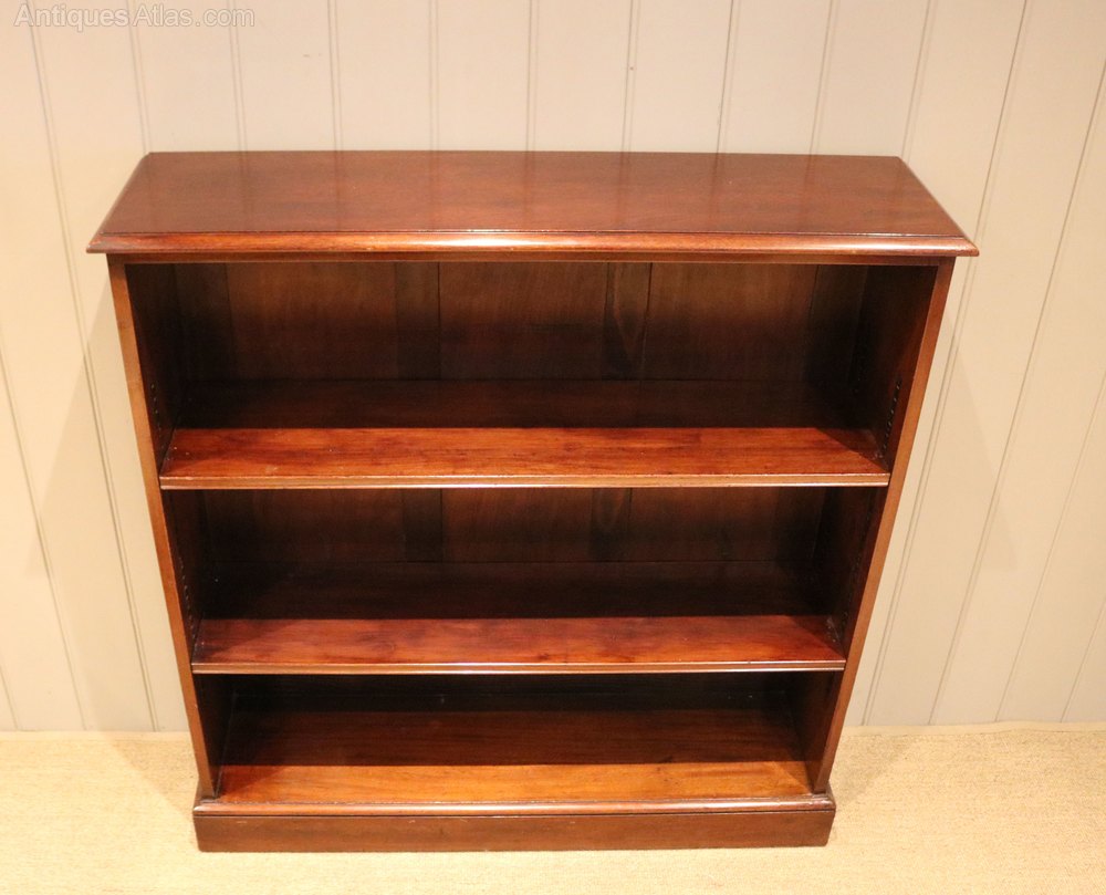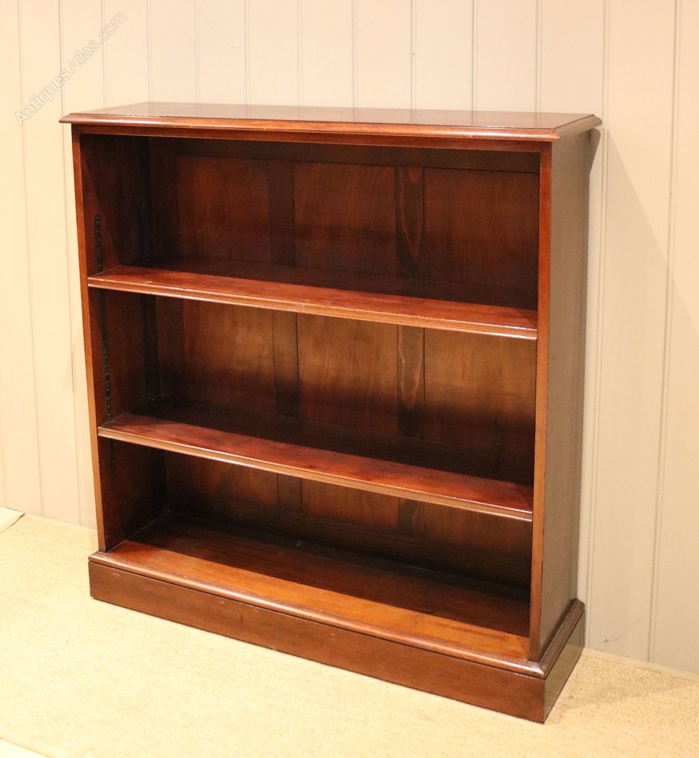 Mahogany open bookcase having two adjustable shelves , raised on a plinth base