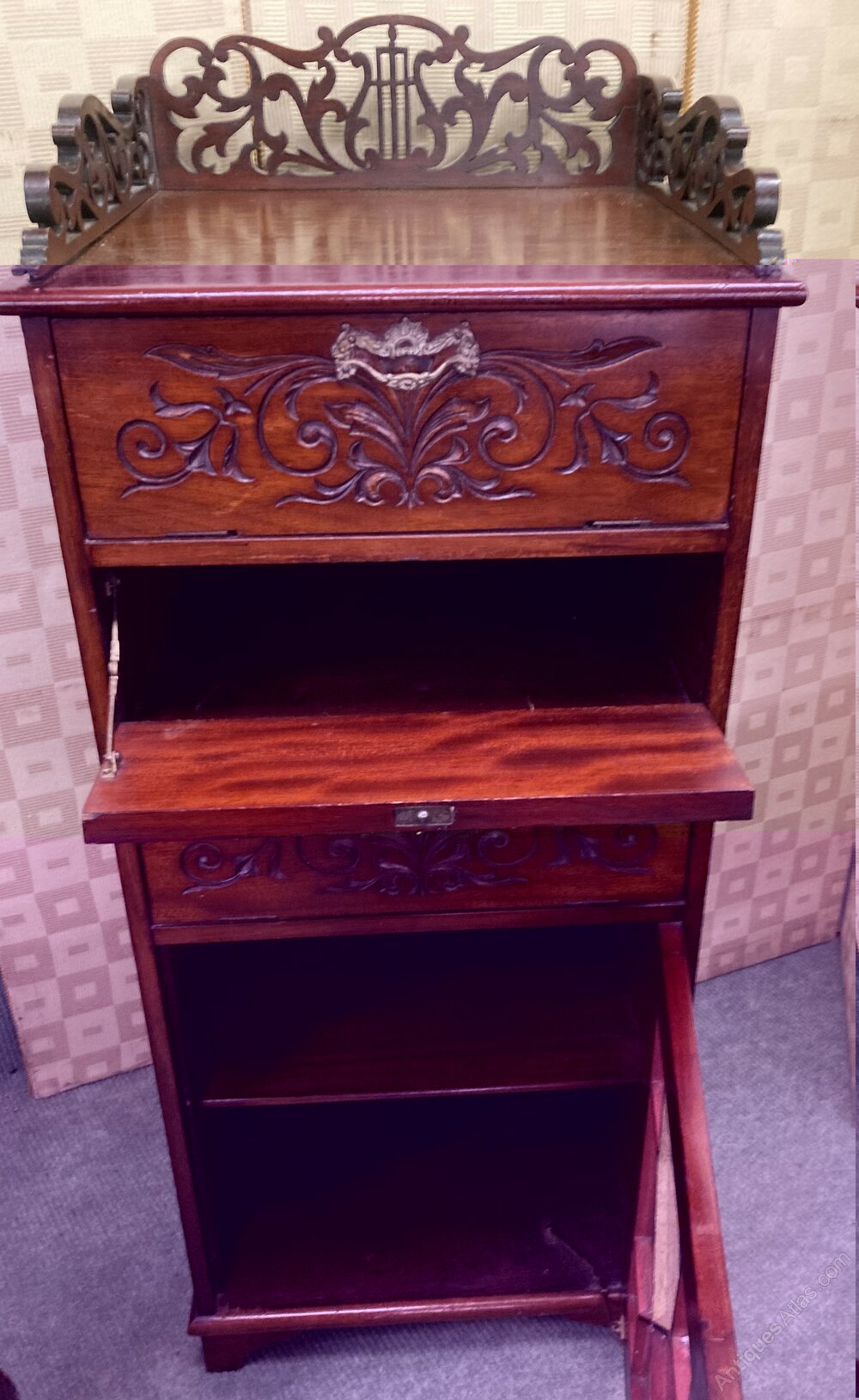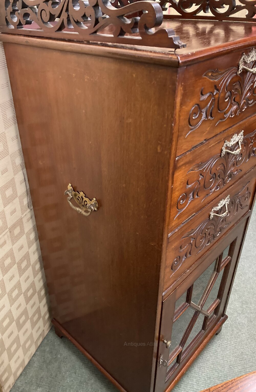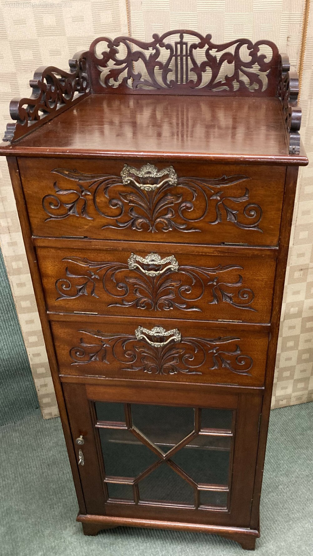 no-437-Edwardian mahogany carved Music cabinet in very good condition