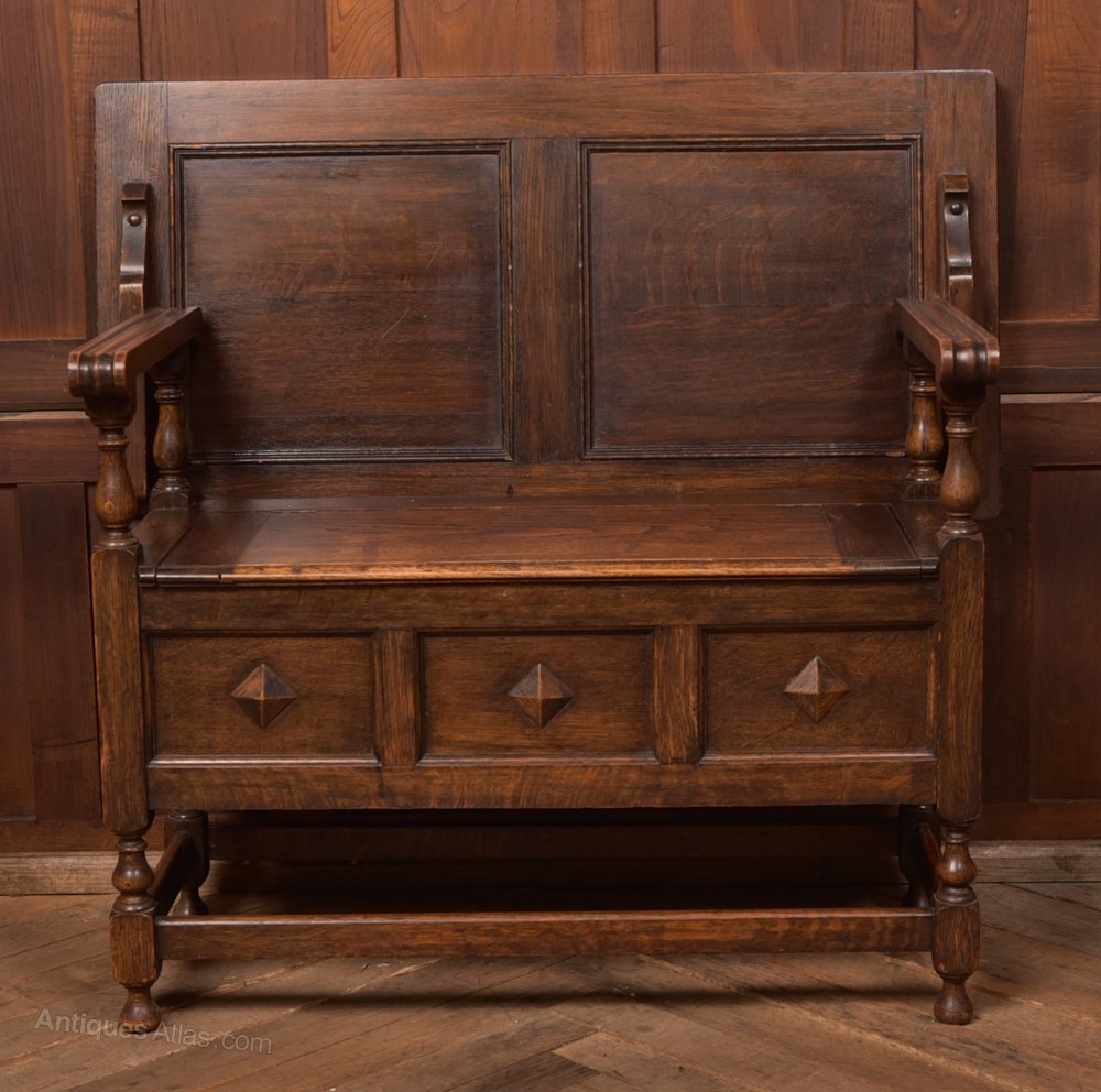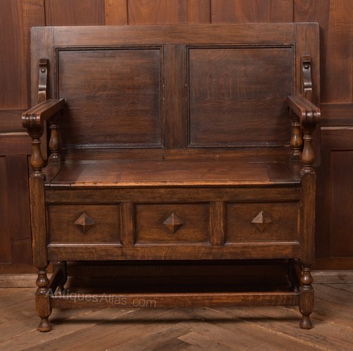Circa 1860 Monks Oak Settle Bench Internal Storage