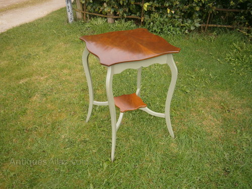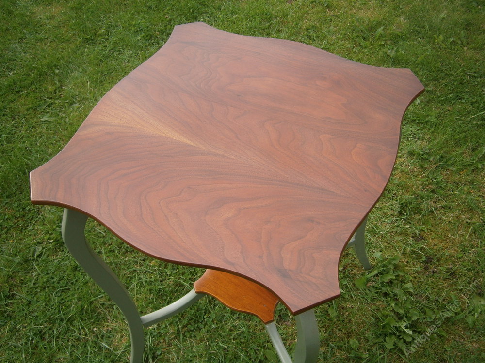 This table is made in walnut with a beautiful polished walnut top and potboard.