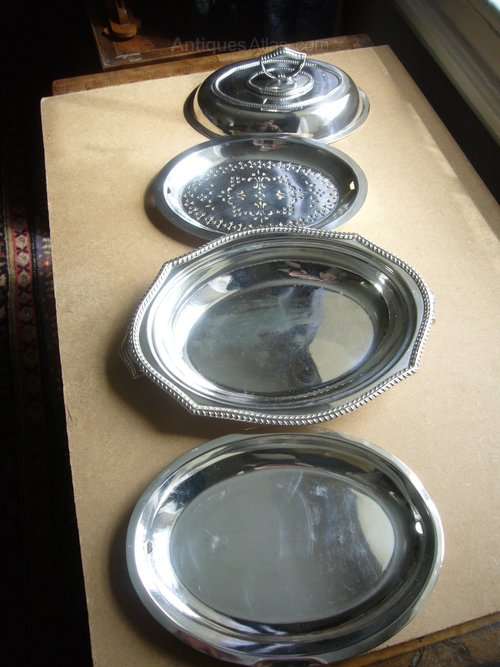 A good quality Edwardian plated bacon dish and cover with drainer and liner.Gadrooned edges.Detachable handle.By William Hutton & Sons of Sheffield.