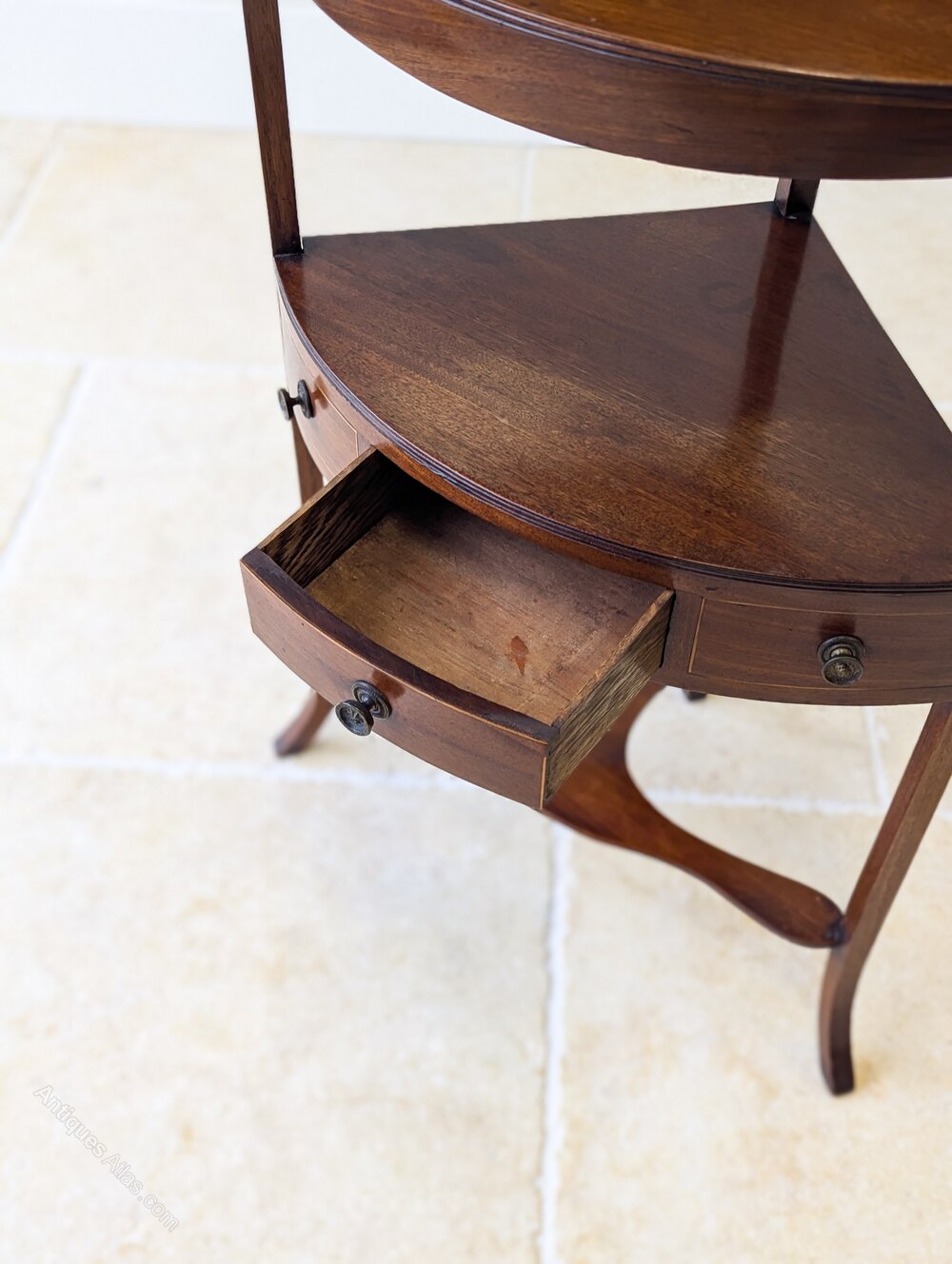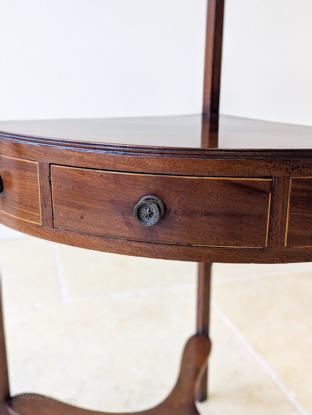 The top tier is enclosed by a shaped gallery which provides a pleasing silhouette, with the proportions, construction and decorative detailing characteristic of quality Sheraton Revival work from around 1900.