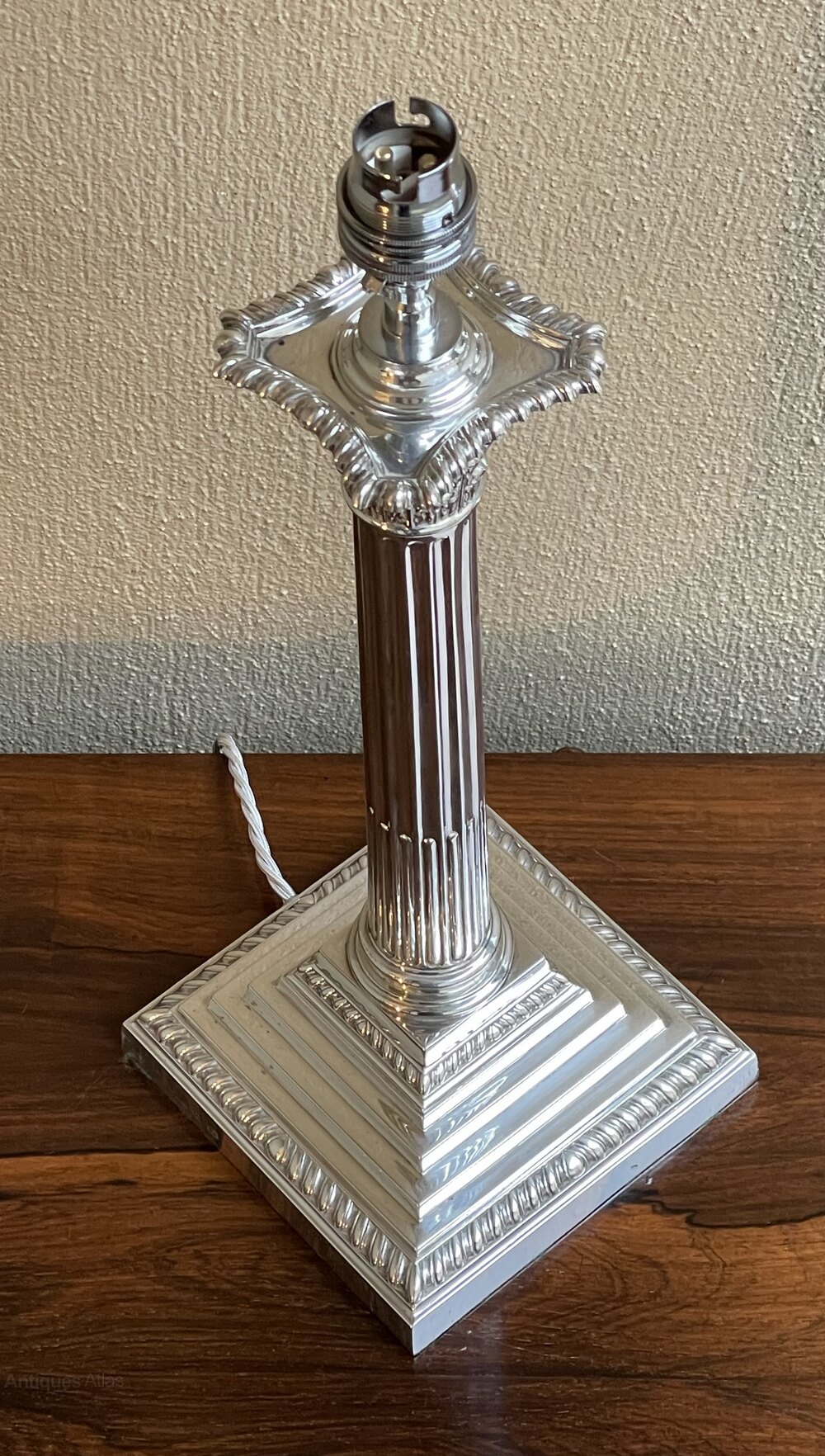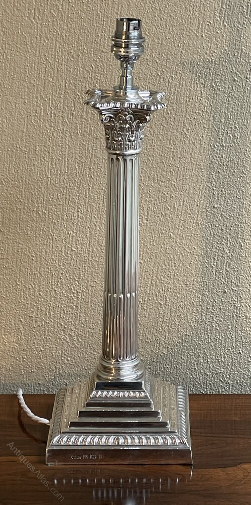 Edwardian Silver Corinthian Column Table Lamp