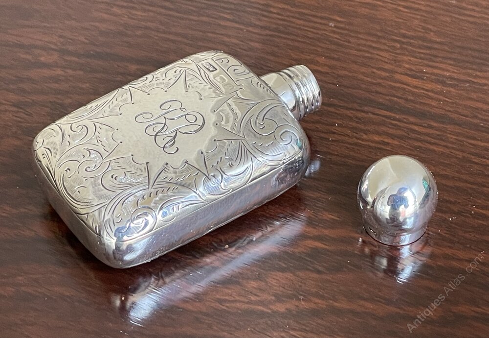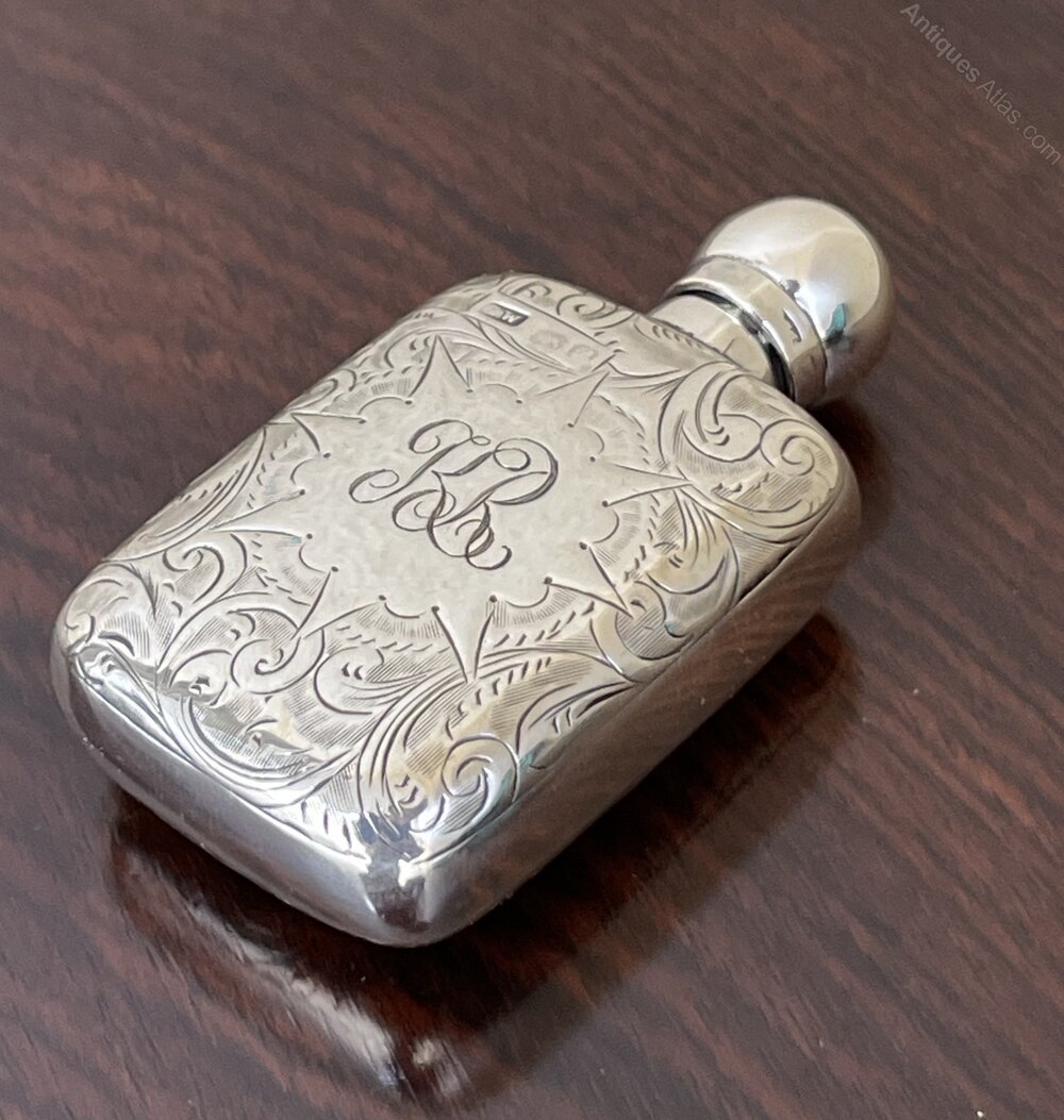 Edwardian Silver Scent Bottle Flask, Chester