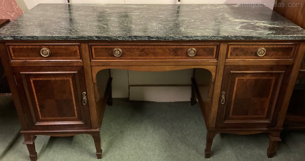 no-119-1901 Large Edwardian Mahogany inlaid Marble-top Wash-Stand no cracks or chips in the marble in very good condition