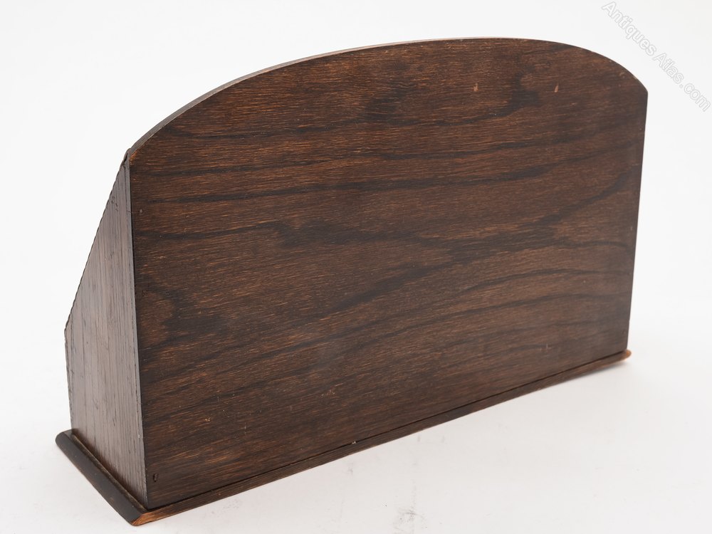 A Fine Oak Letter Rack With Two Good Ink Bottles