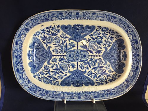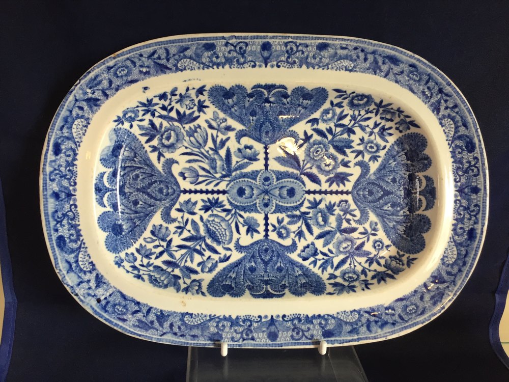 Pearlware oblong plate with islamic inspired decoration.