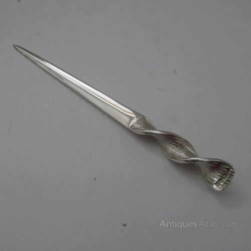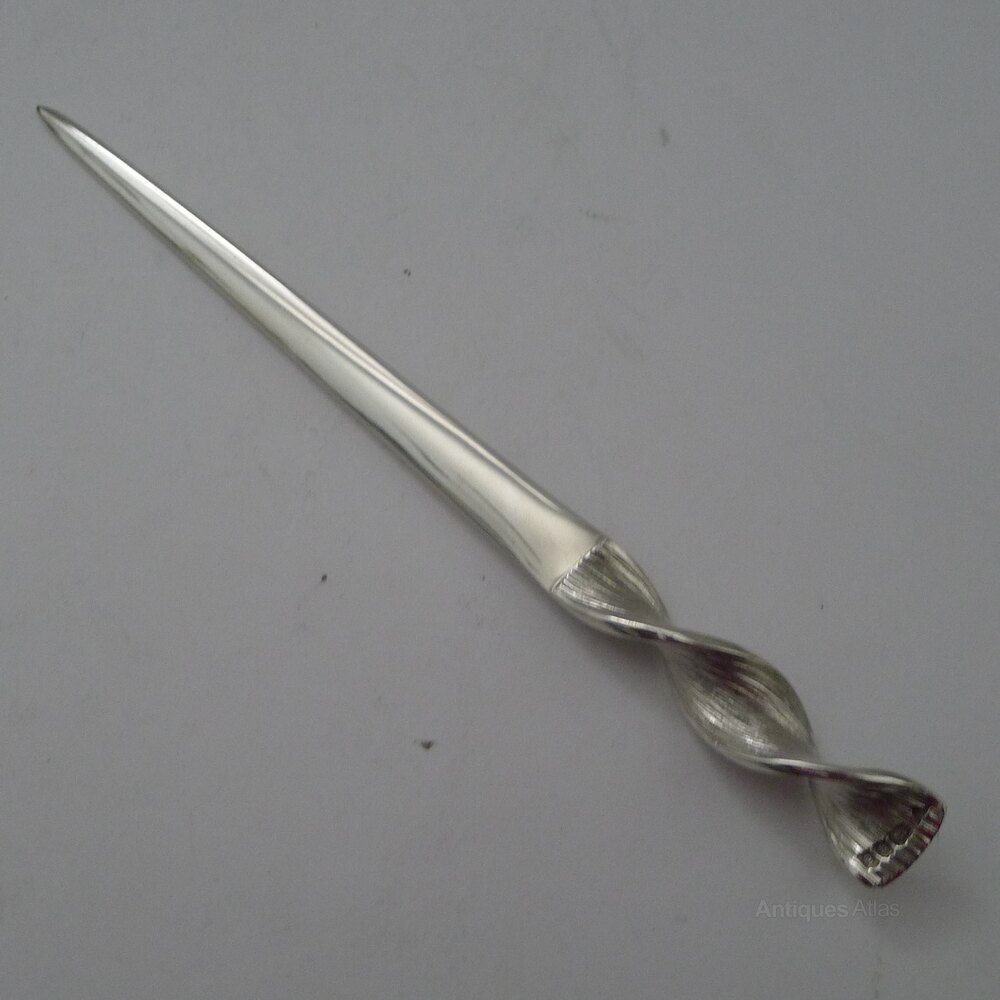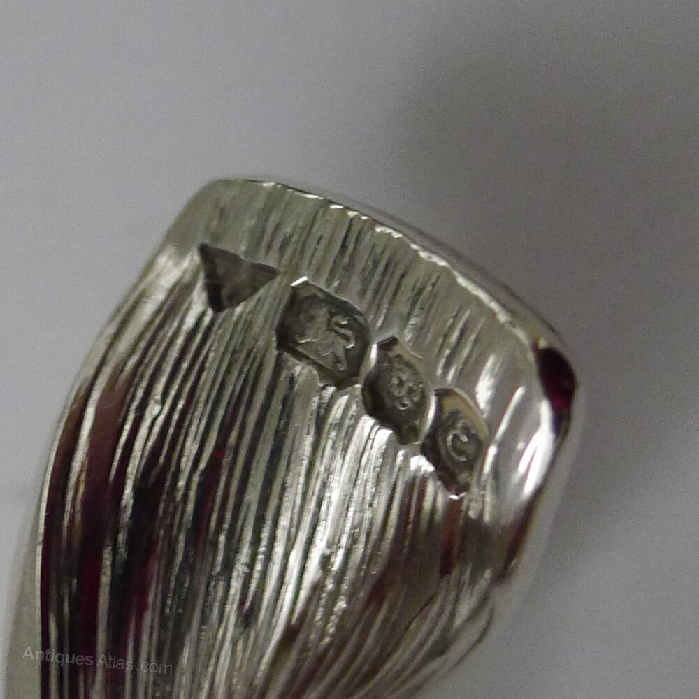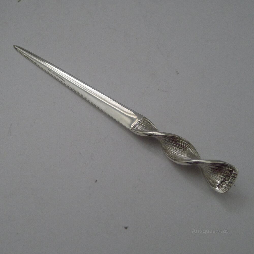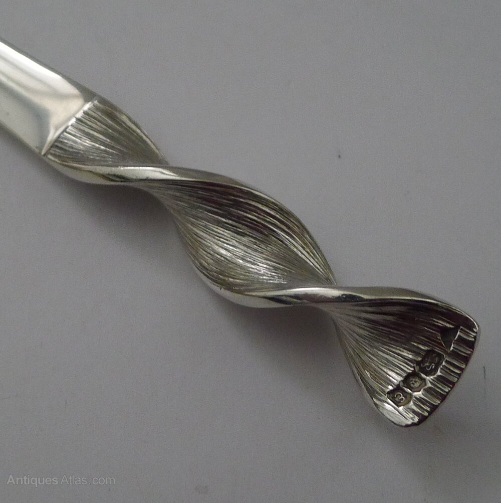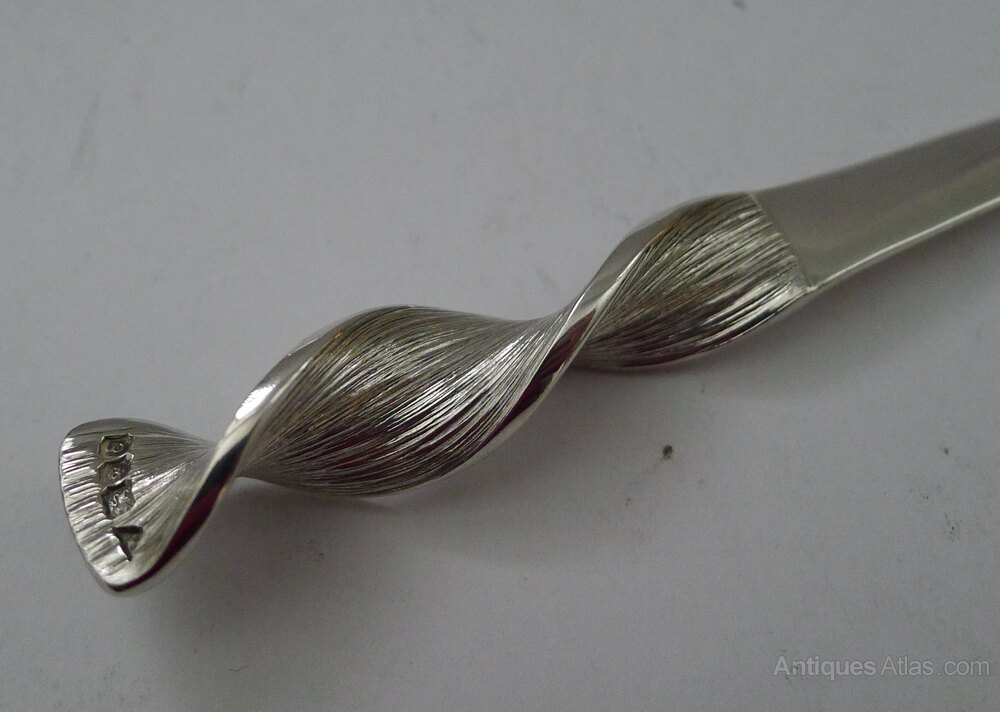 Made from solid English silver fully hallmarked for London 1979 together with the makers mark. The handle is exceptionally tactile with it's textured finish and modern twisted form.