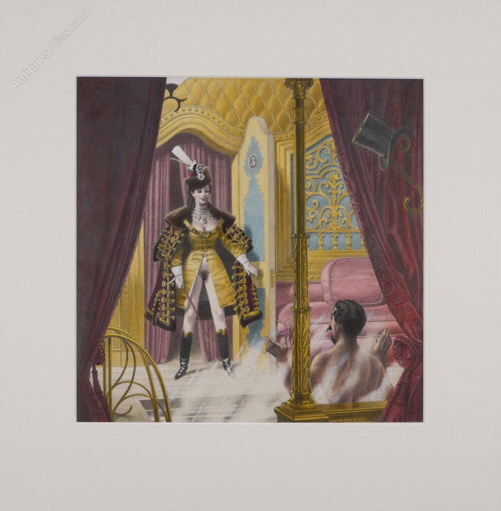 Pencil, watercolour, and gouache, highlighted with white and gum arabic on paper. This picture is an unpublished design for the book “The Memoirs of Coral Pearl, the erotic reminiscences of a flamboyant 19th-century courtesan,” pub Granada 1983. We are currently holding two other related watercolours by the artist.