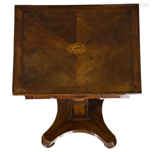 An exceptional continental work table, circa 1840, on concave platform base