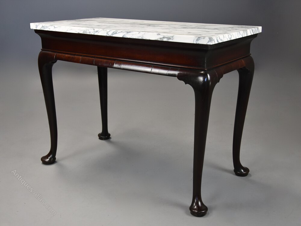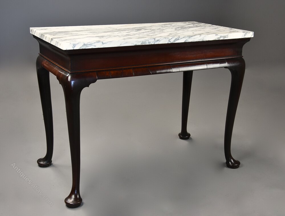 The marble top is supported on a walnut base with oak frame consisting of a bold cavetto frieze with cross-grain quadrant moulding below leading down to the elegant cabriole legs shaped to the top and terminating with four large pad feet.
