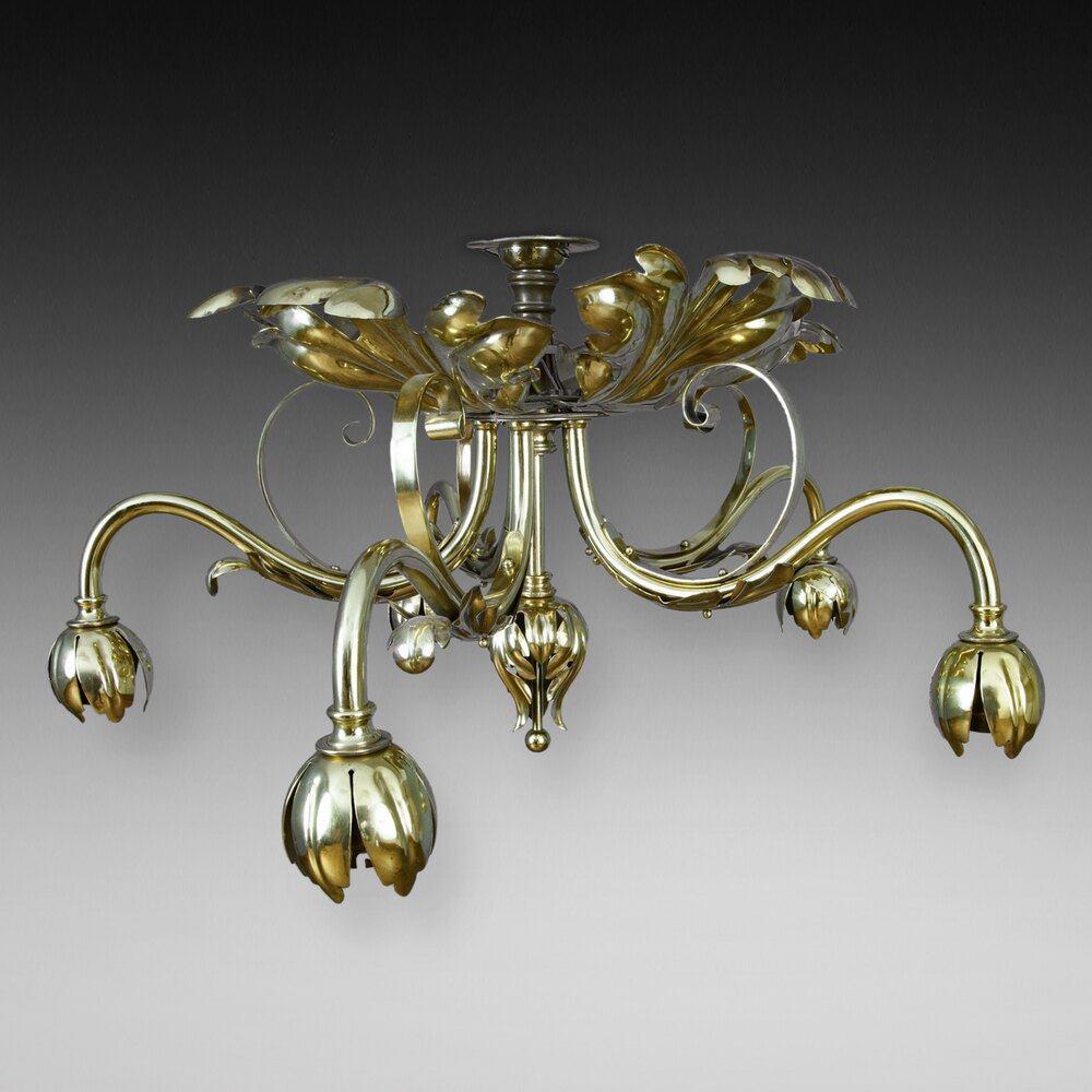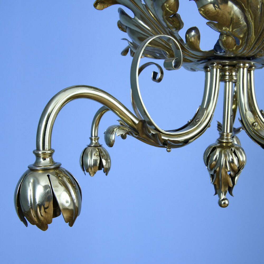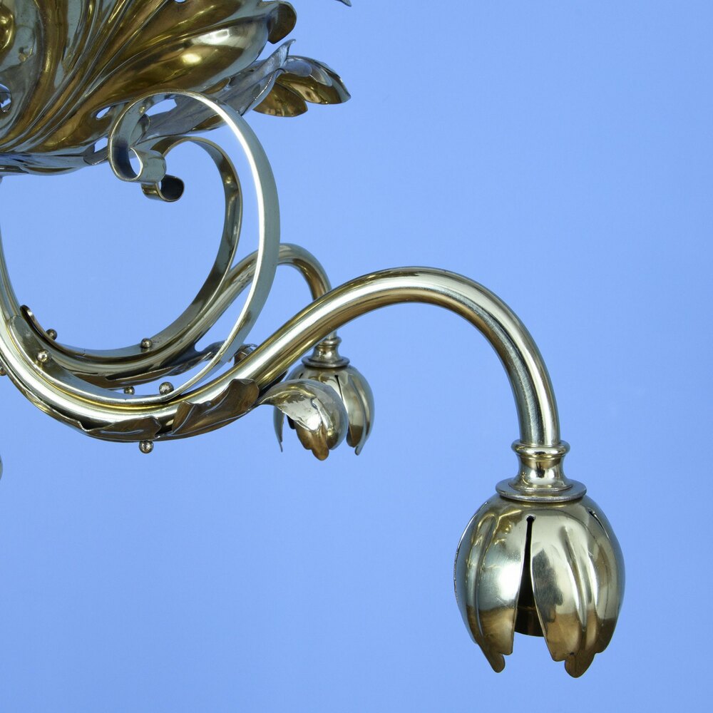 F & C Osler - Early 19thC Brass Ceiling Lamp fitting with 5 Arms Decorated with Acanthus Leaves - 21" diam x 12"h - all lights and lamps have been rewired with authentic corded flex, fitted with either foot switch or finger clicker switch and are Pat tested