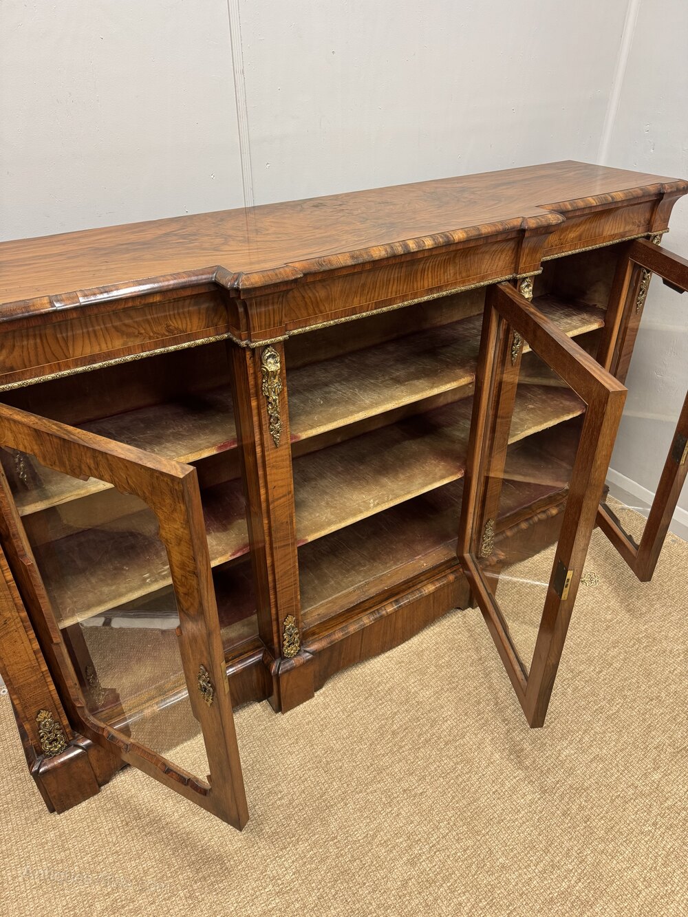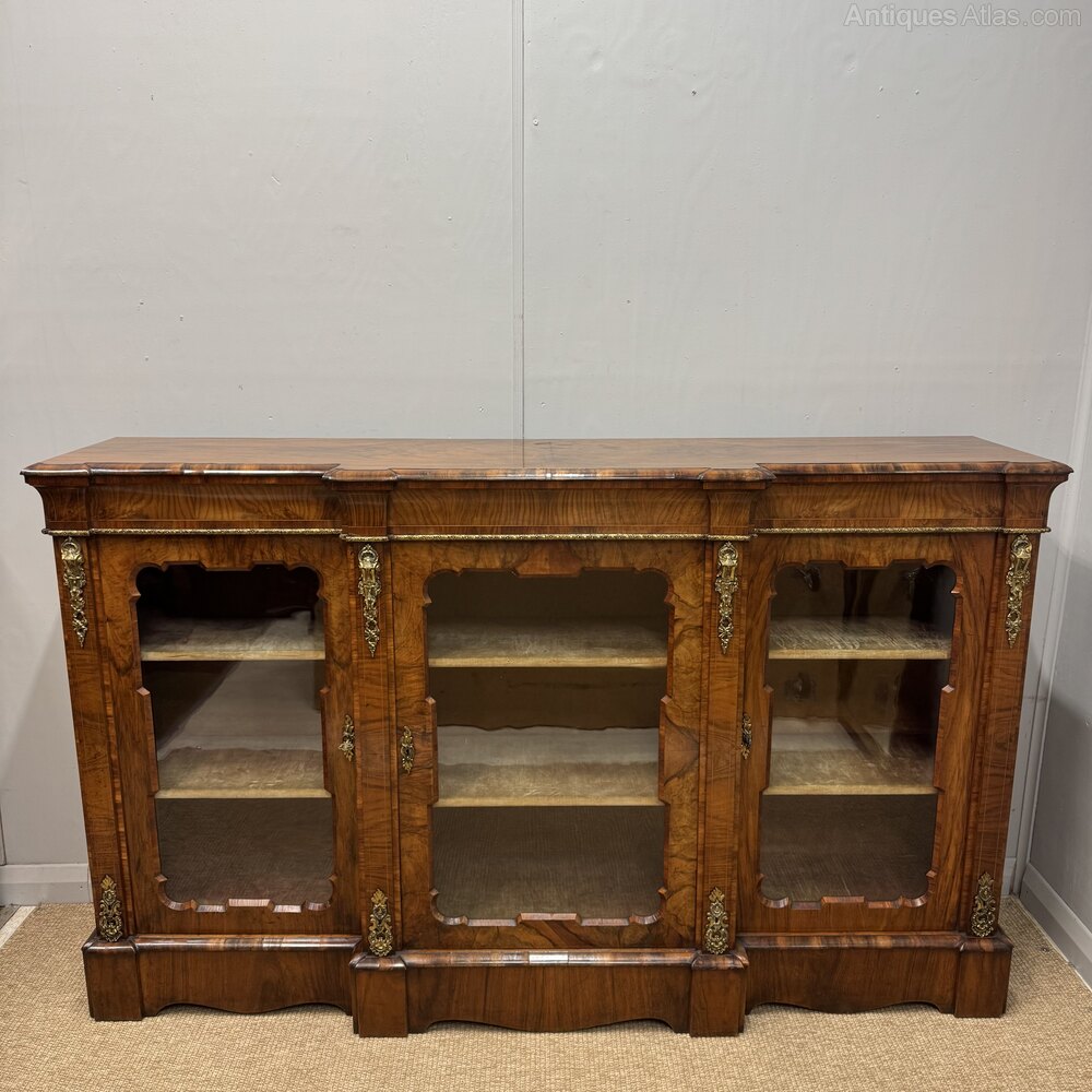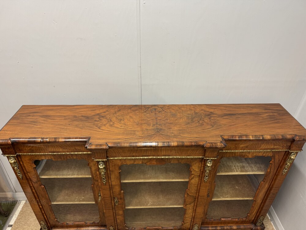 Figured Walnut Breakfront Bookcase