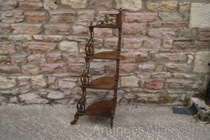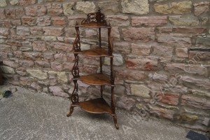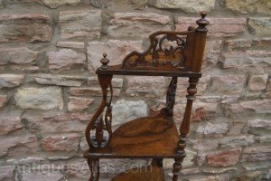 A very fine fretted and burr walnut corner wotnot. This lovely example is in great original condition , a great piece of Victorian antique furniture.