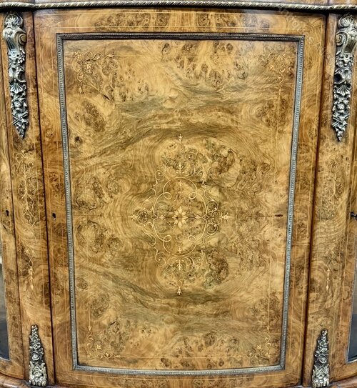 A Mid-Victorian Burr-Walnut and Satinwood Credenza