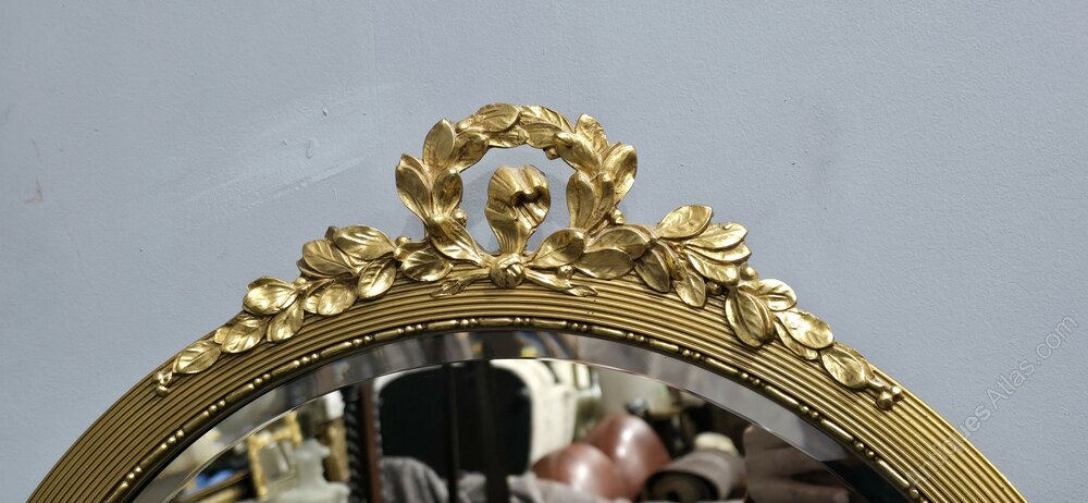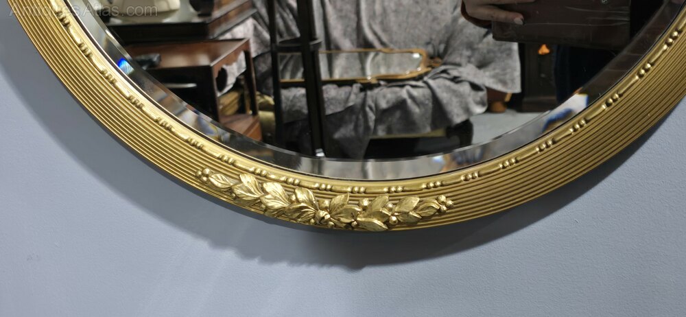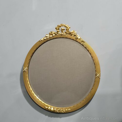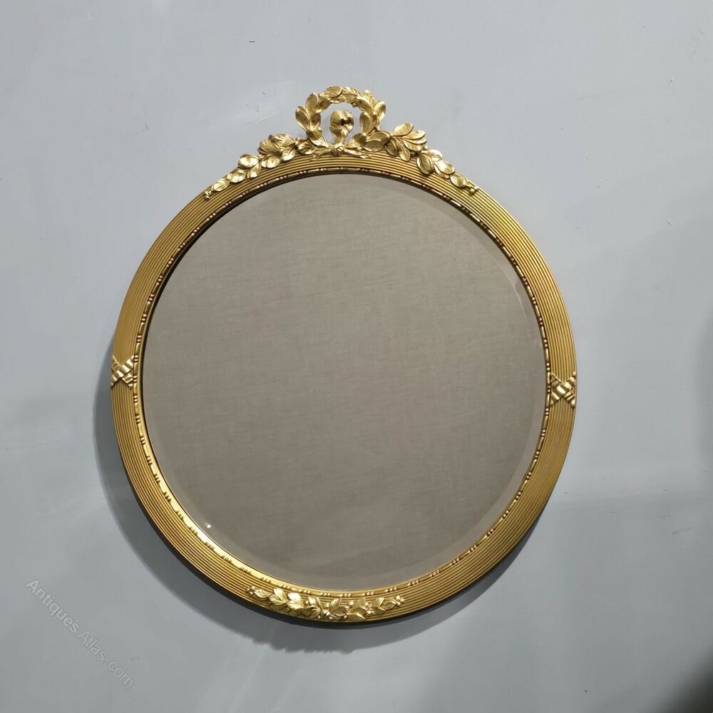 A supberb quality Edwardian round gilt mirror, original bevelled mirror plate, bow and rib detailing with flower top, in excellent overall condition.