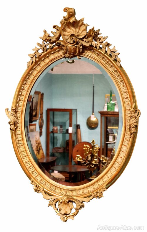 A beautifully executed Louis XV style French wall mirror, richly carved and finished in a warm, burnished and toned gilt. The oval frame is adorned with exuberant rococo detailing, including scrolling acanthus leaves, floral sprays and a central shell crest to the top and base—hallmarks of mid-18th century French design.