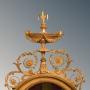 French Gothic Gilt Overmantel Mirror & Twin Sconce