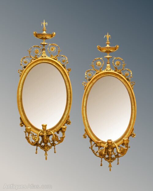 An elegant pair of 19th century Adam’s style Girandole mirrors in outstanding original condition dating from around 1900.