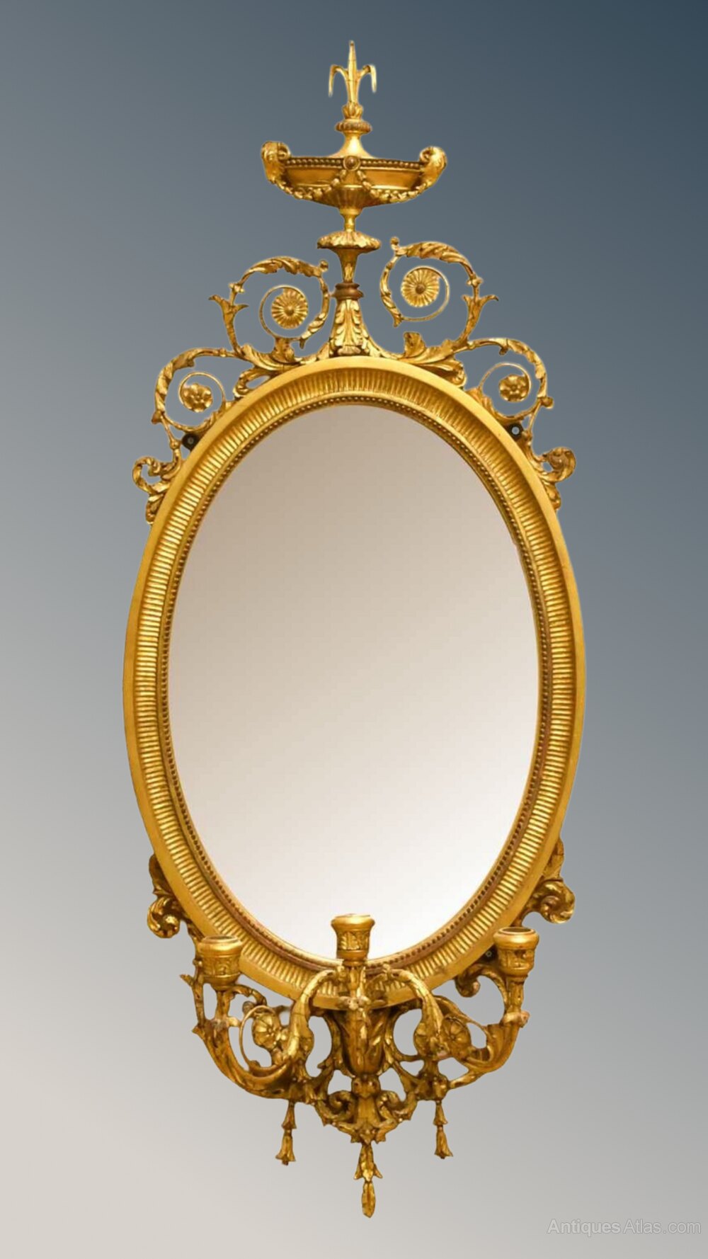 Mid 19C Gilt Oval Girandole Wall Mirror