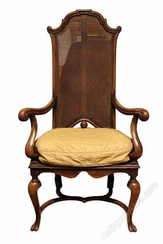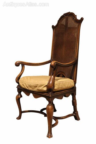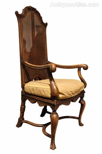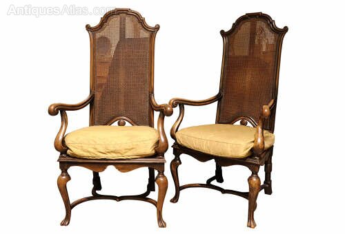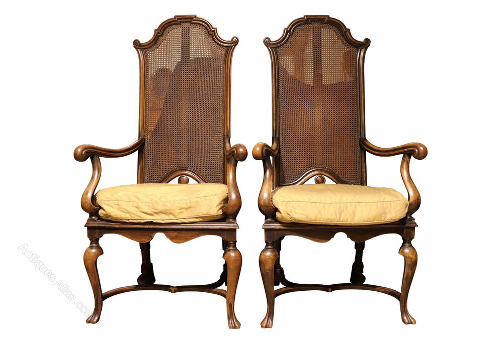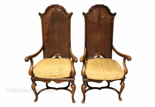 Fine Pair Walnut High Back Caned Armchairs