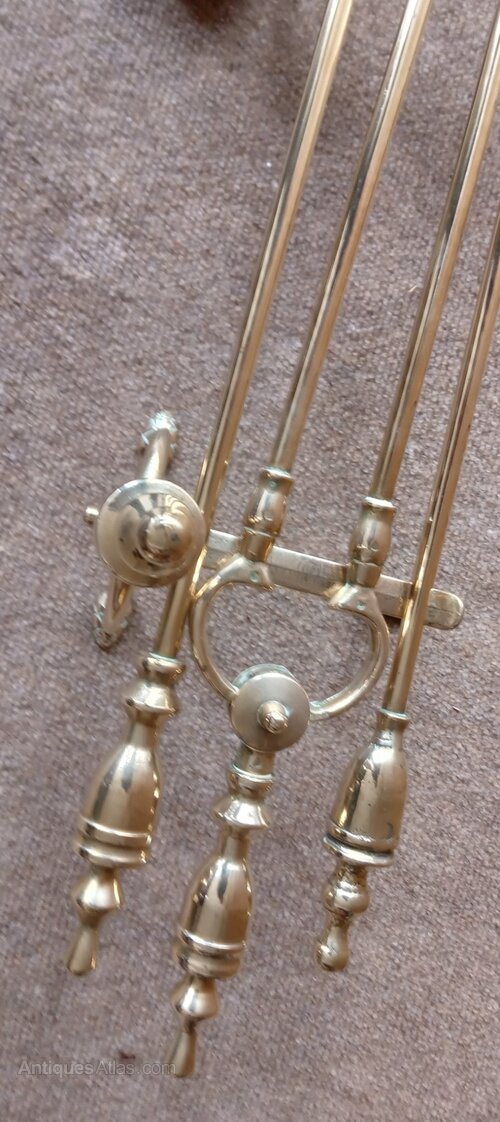 Another great SET OF VICTORIAN FIRE IRONS . Length of the Irons approx 26 inches, the Height of the Dogs 10 inches.