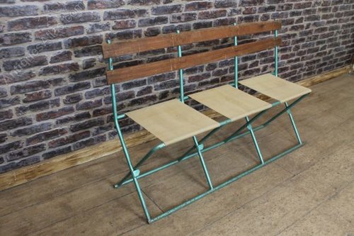 Available in a three or five seat variety, these benches would be great as additional seating for parties, or for use in bars and restaurants. They have a turquoise blue painted frame and feature canvas seats and a timber back.