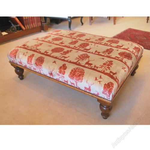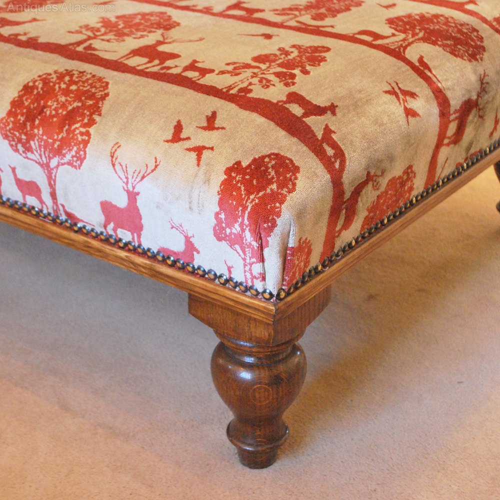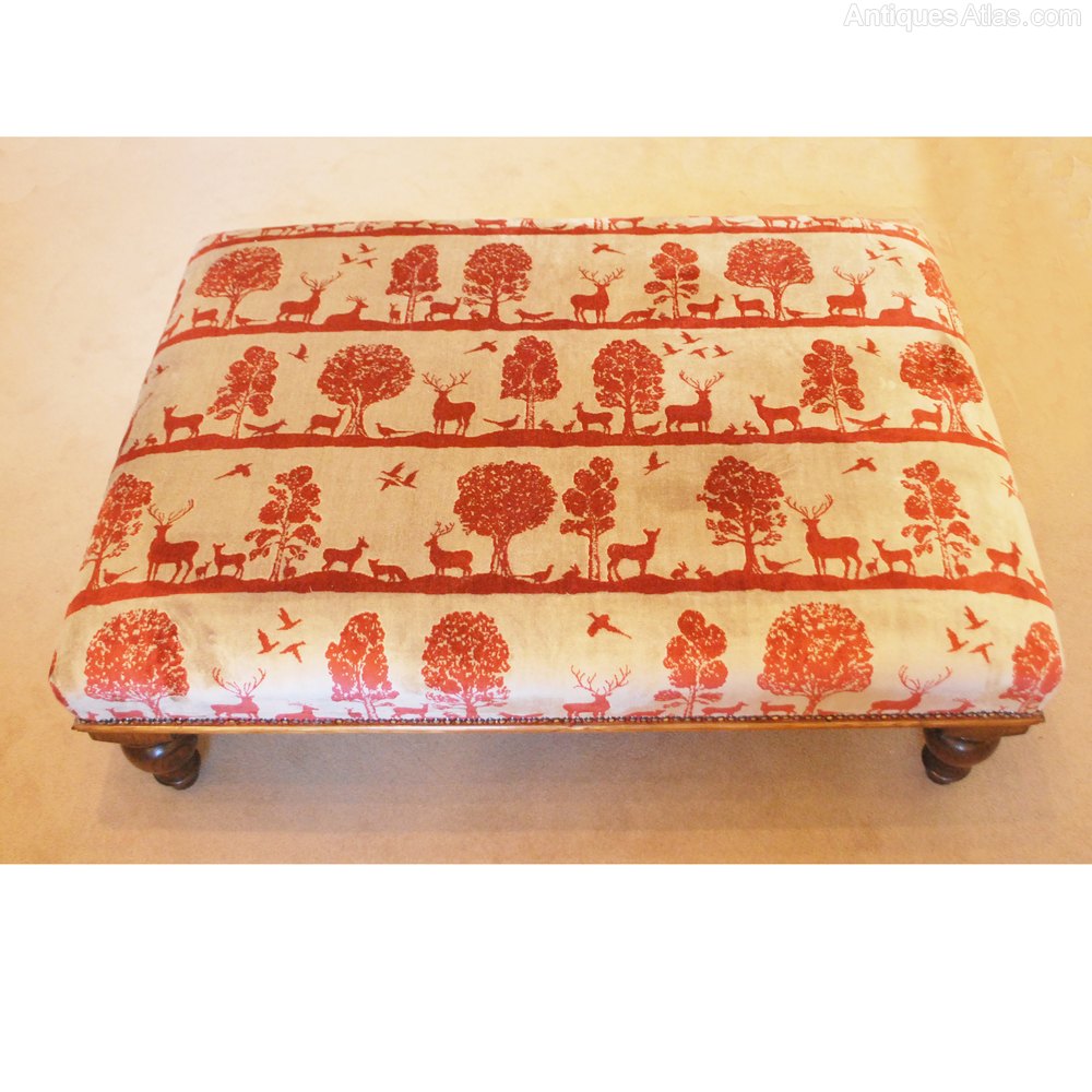 Antique style stool or coffee table with Vintage turned Oak legs. Centre stool / coffee table or large footstool, upholstered with red Deer print.