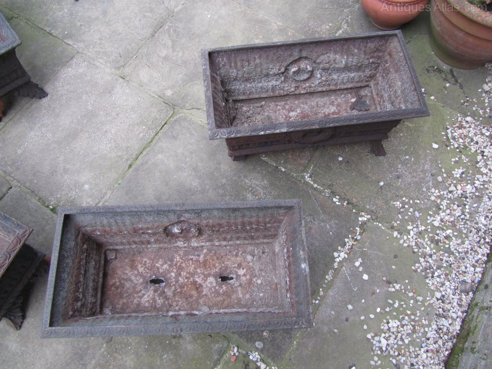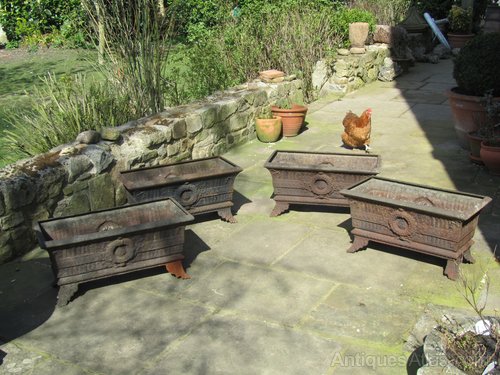A lovely set of four 19thc French cast iron planters. In original as found condition.