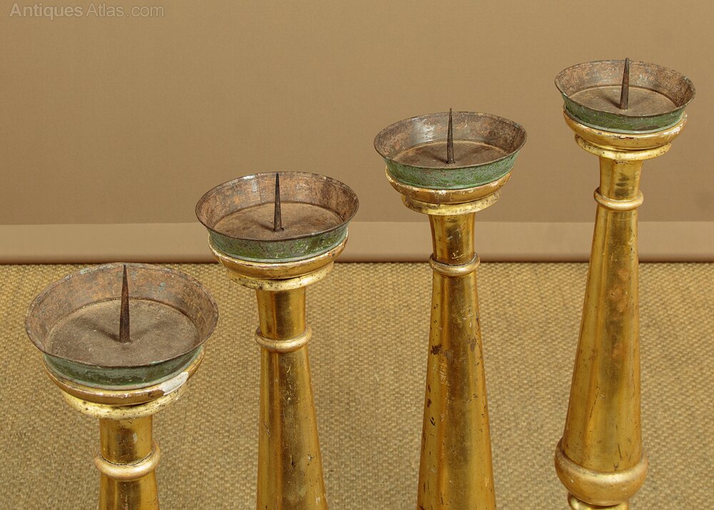 Four Large Giltwood & Toleware Candlesticks c.1810