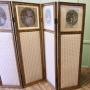 French Upholstered 4 Fold Screen, Gilt Mirror Room Divider