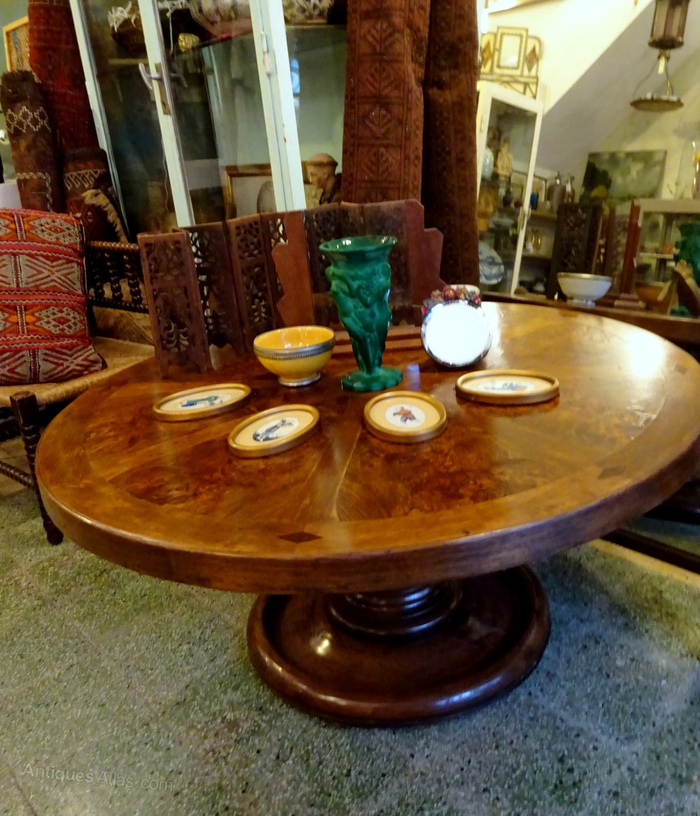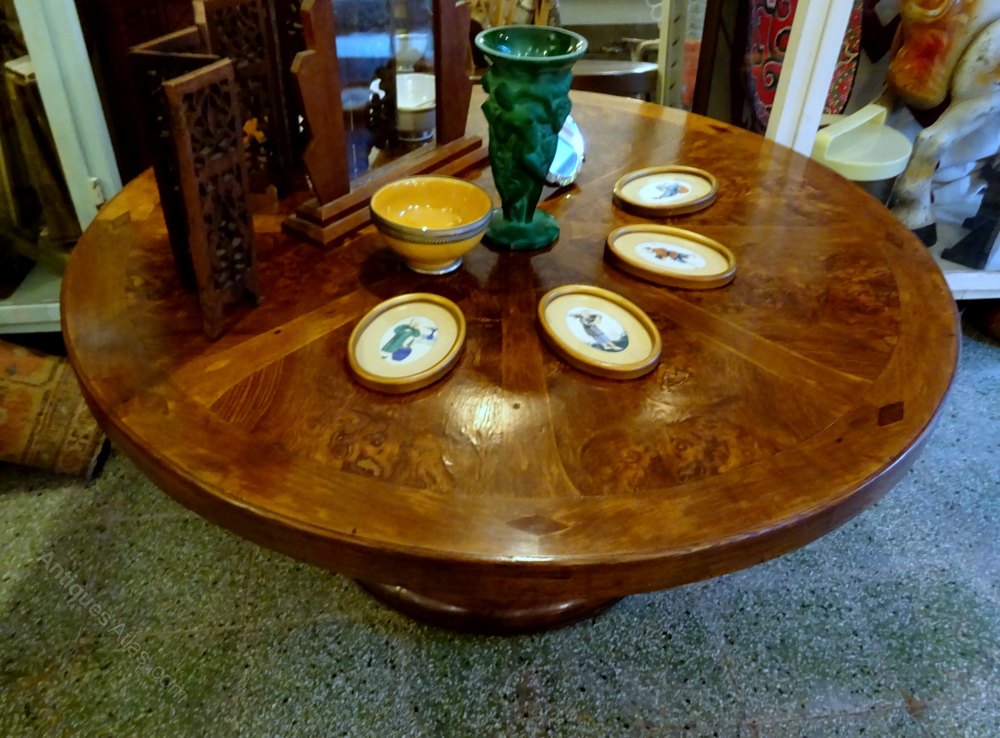 Fabulous French Art Deco 1930s Burr Walnut Veneer & Oak Round Low Coffee Table