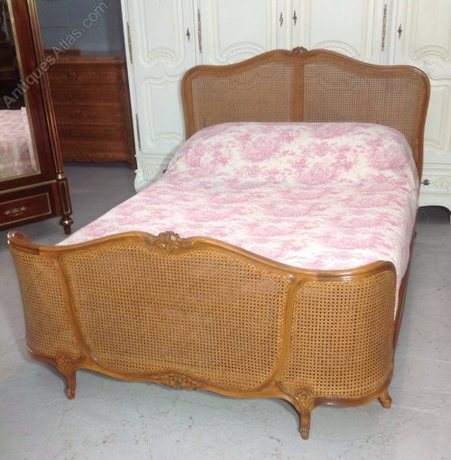 This lovely french walnut corbeille bed with bergere panels is offered in very good condition .