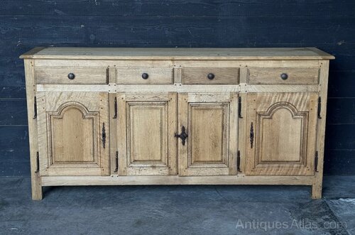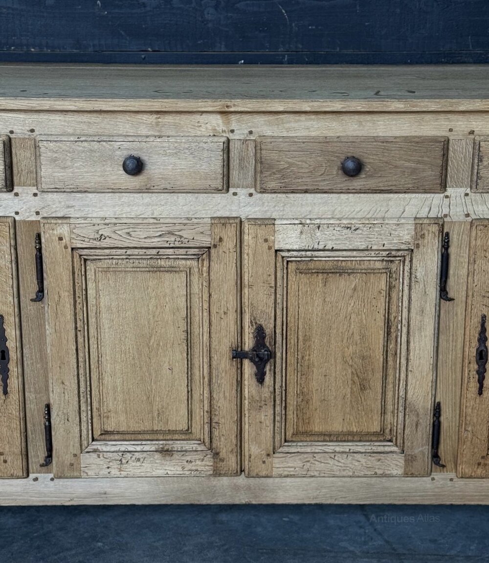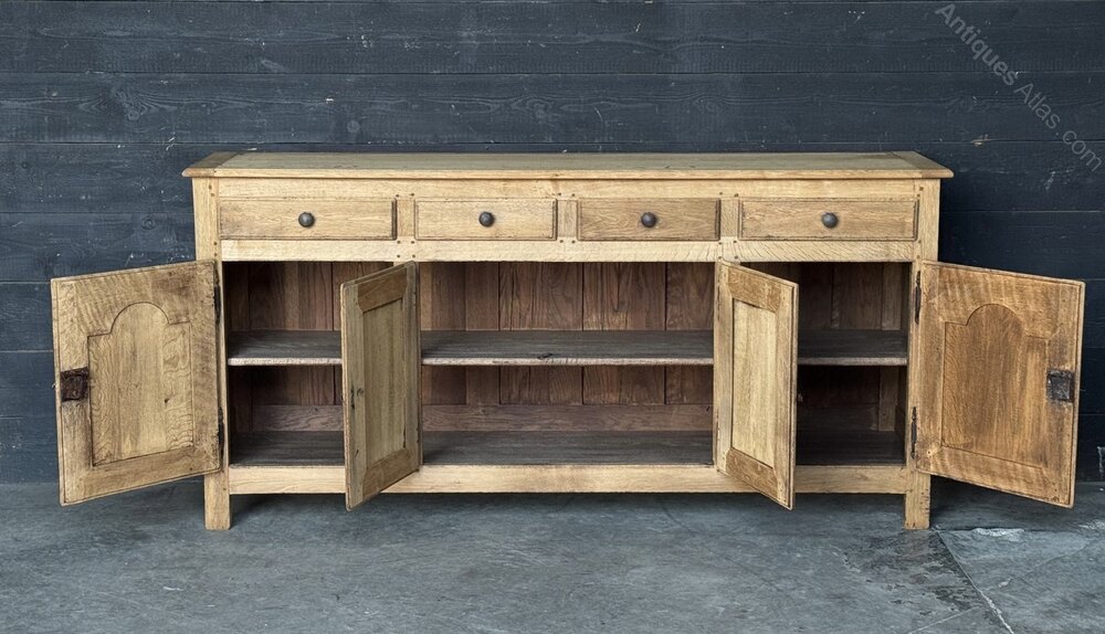 A lovely French Oak Enfilade or Sideboard. Dating to around 1900 and of excellent quality construction. 4 doors with 4 drawers over, all original hardware and we have bleached it for a lighter look. In overall excellent original condition for the home.