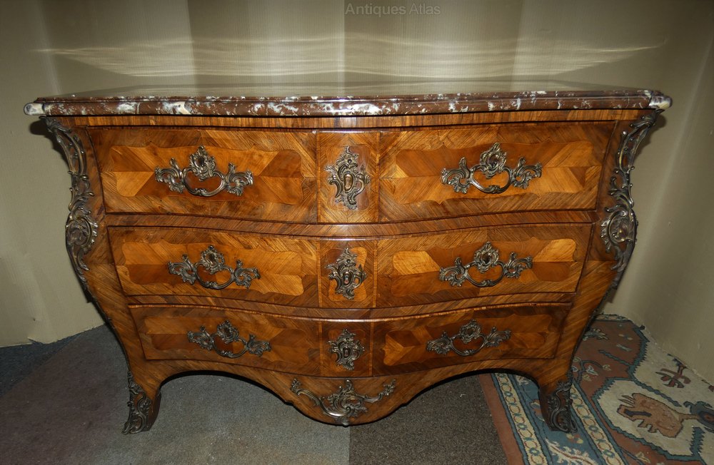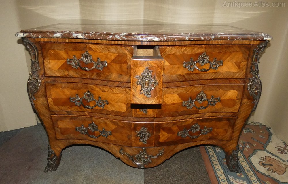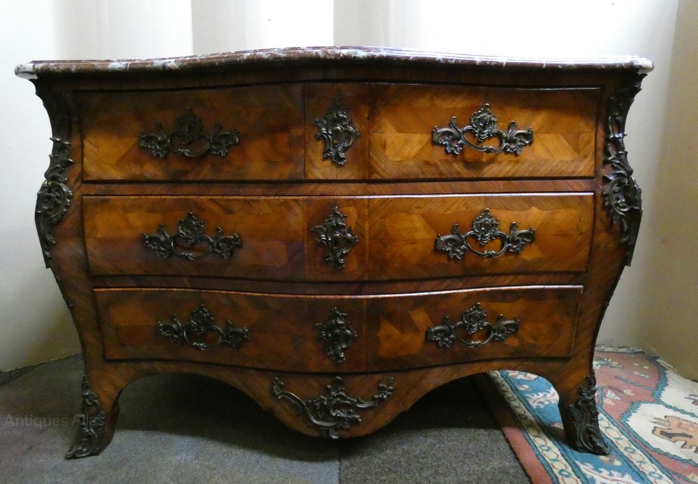 This fine quality quarter veneered chest with original marble top has two small drawers over two long drawers ( all oak lined ) along with a central small "secret" drawer and wonderful ormalu mounts.
