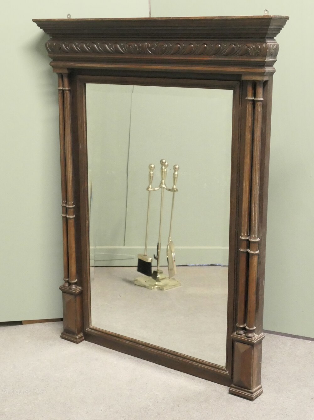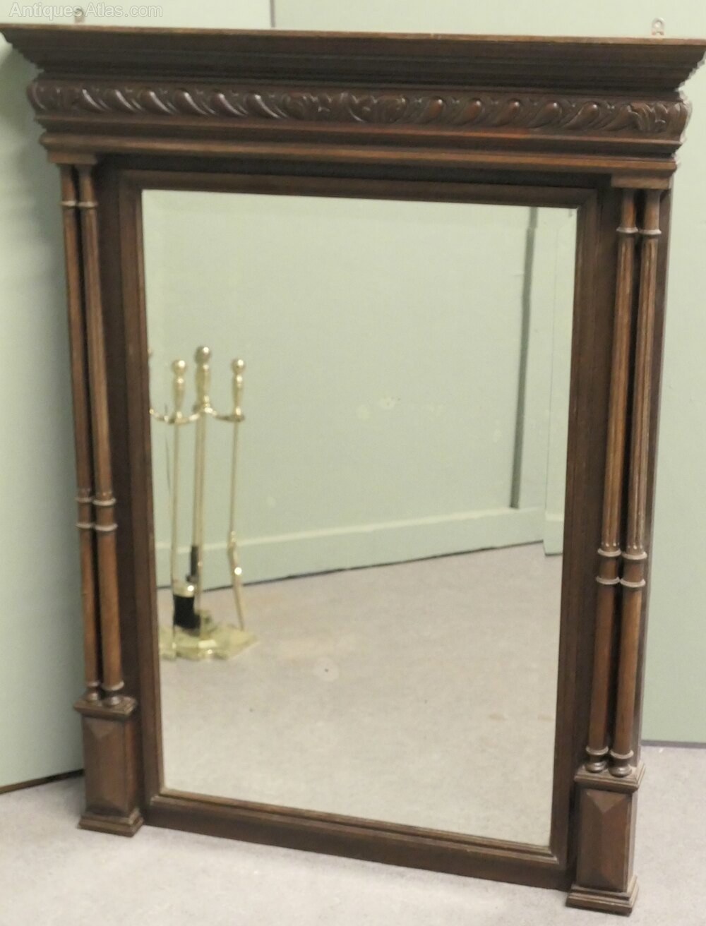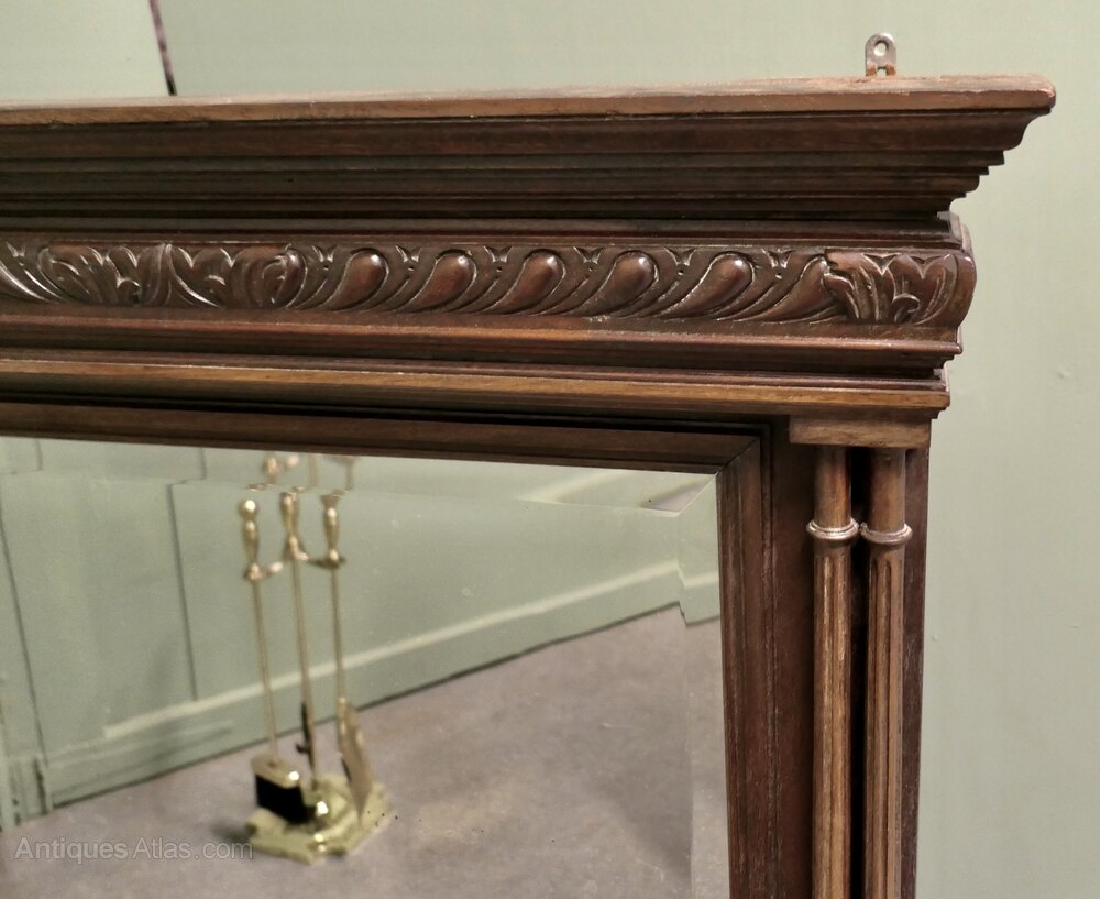The Fine Oak Mirror Frame is Crisply Carved with double turned and fluted columns at each side