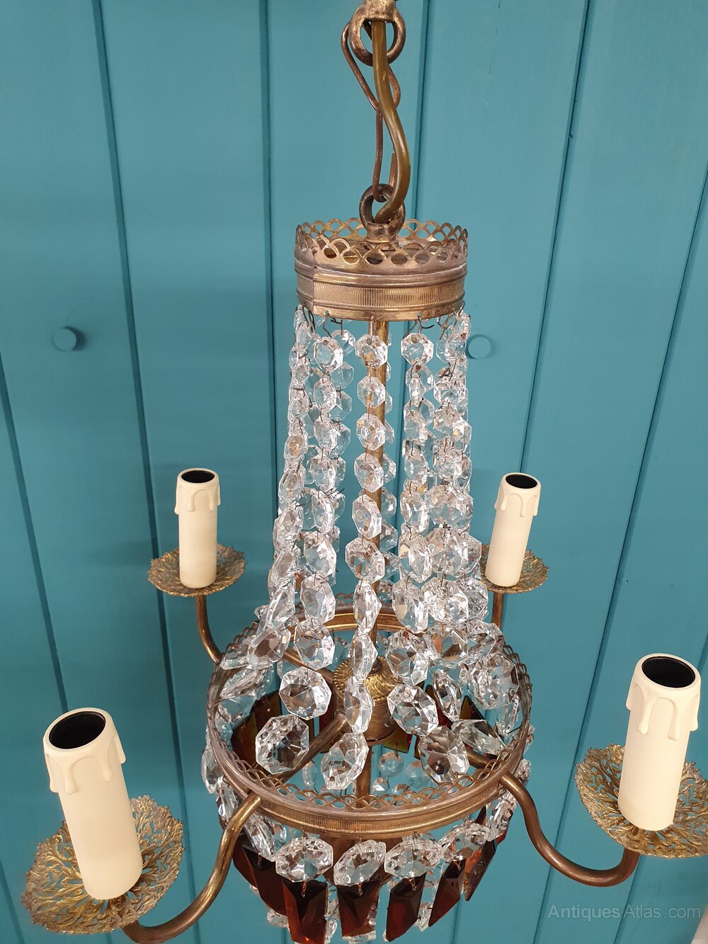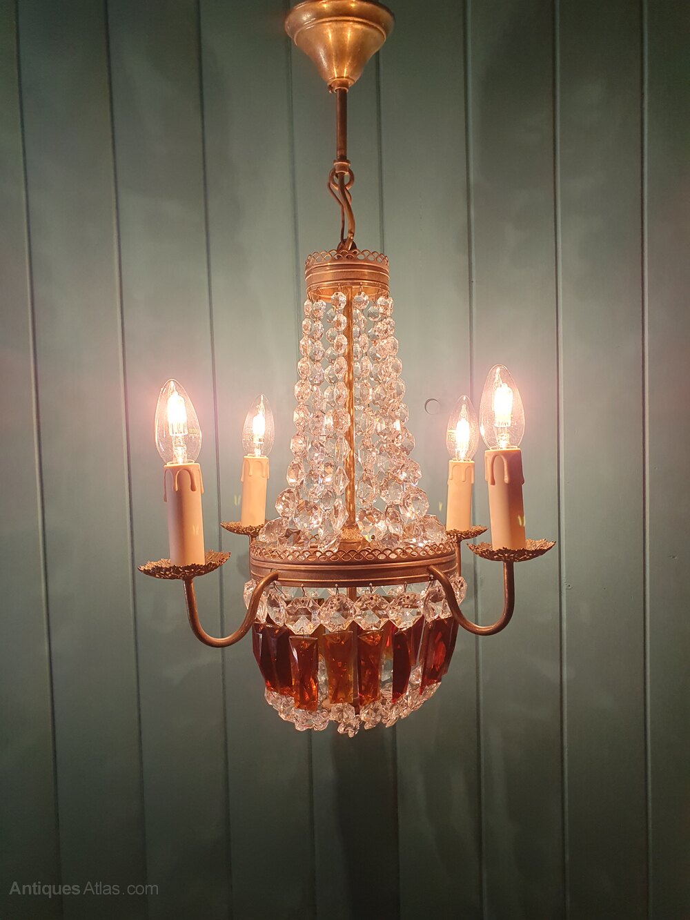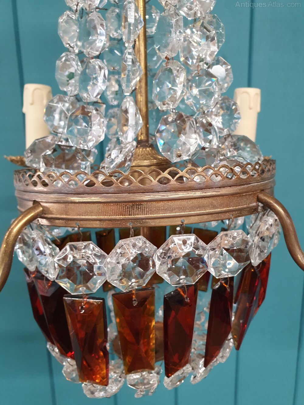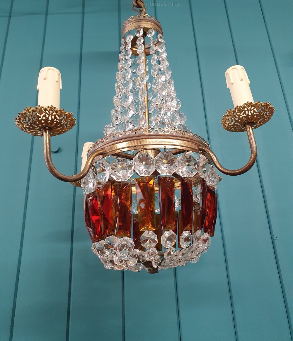 French Chandelier With Ruby Coloured Prisms