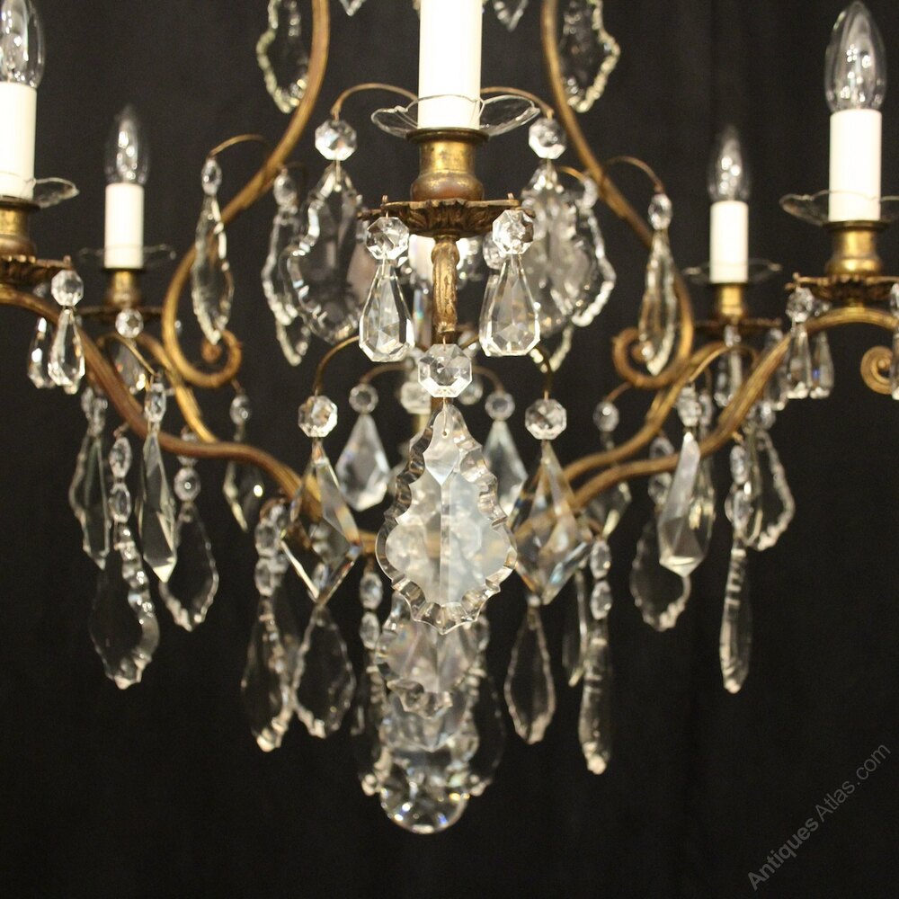 French Gilded Bronze 8 Light Antique Chandelier