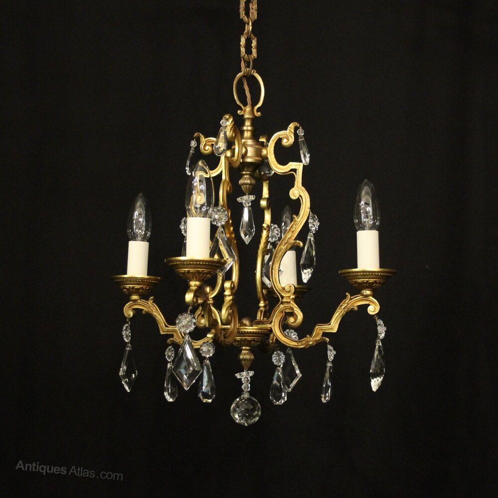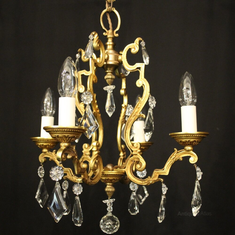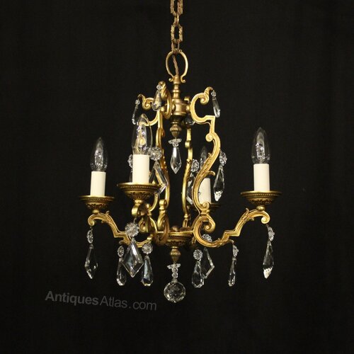 French Gilded & Crystal 4 Light Chandelier
