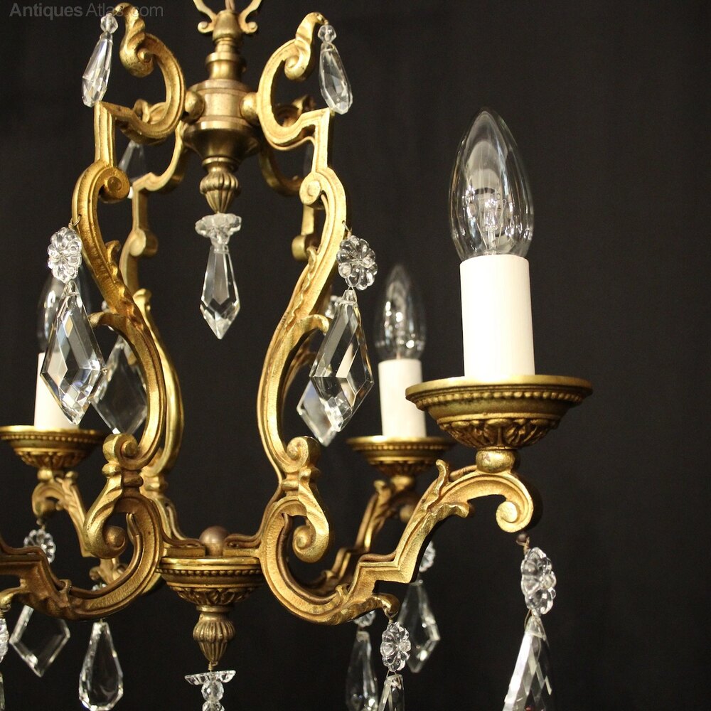 A Large French Gilded Brass 6 Branch Chandelier